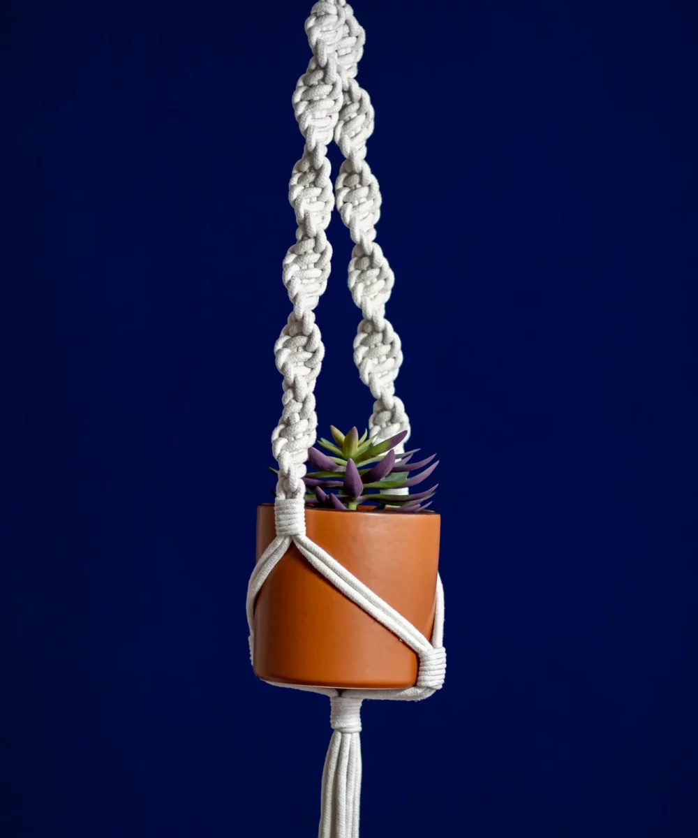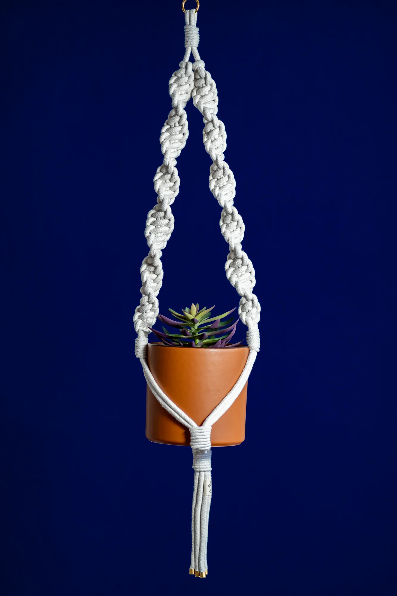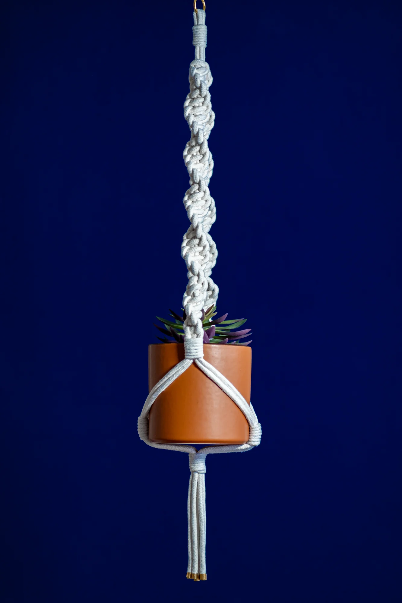 Ces deux torsades imposantes, véritables sculptures de corde, créent un jeu de volumes unique. Leur grande amplitude confère une sensation de mouvement, de dynamisme subtilement rompue par des touches dorées appliquées avec parcimonie.