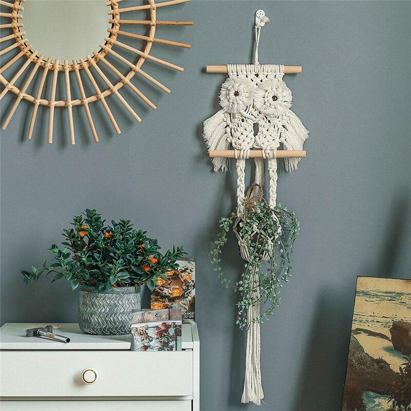Notre suspension en tressage est à mi-chemin entre le tressage mural et la suspension pour plante. Son grand tissage décoratif apportera du volume à votre pièce tandis que son panier en osier pourra accueillir de magnifiques plantes pour la constitution d’un jardin intérieur splendide.