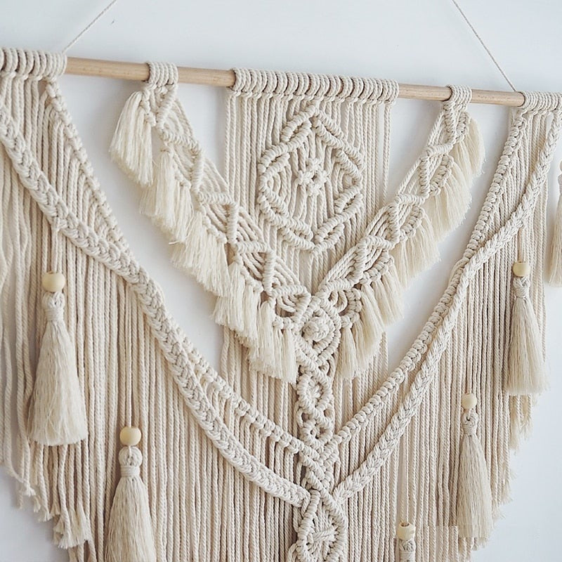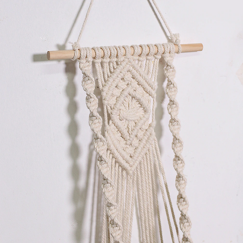Le tressage est une technique faite pour la maison car il a à la fois de la texture et de la couleur. Cette suspension tressage murale bicolore sera un plus dans votre chambre ou votre salon pour ajouter un peu de style bohème !