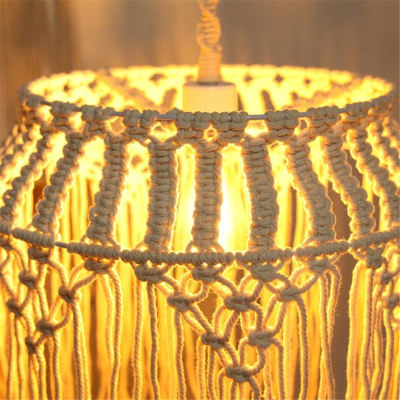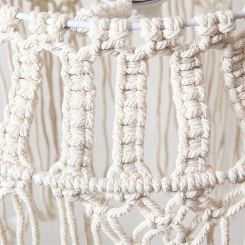 Ce tressage luminaire en tressage est fabriqué avec des matériaux de qualité et comporte de longs fils de coton en frange qui peuvent être utilisés, pourquoi pas, pour suspendre quelques perles de bois. La douce lumière qu’il diffuse illumine votre pièce, dégageant un look de quasiment un autre monde, parfait pour n’importe quel décor !
