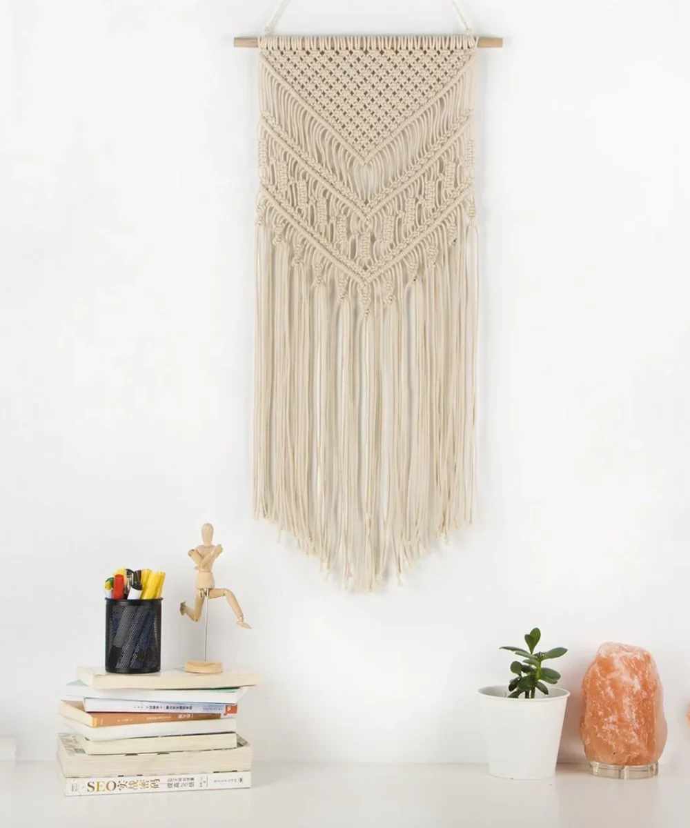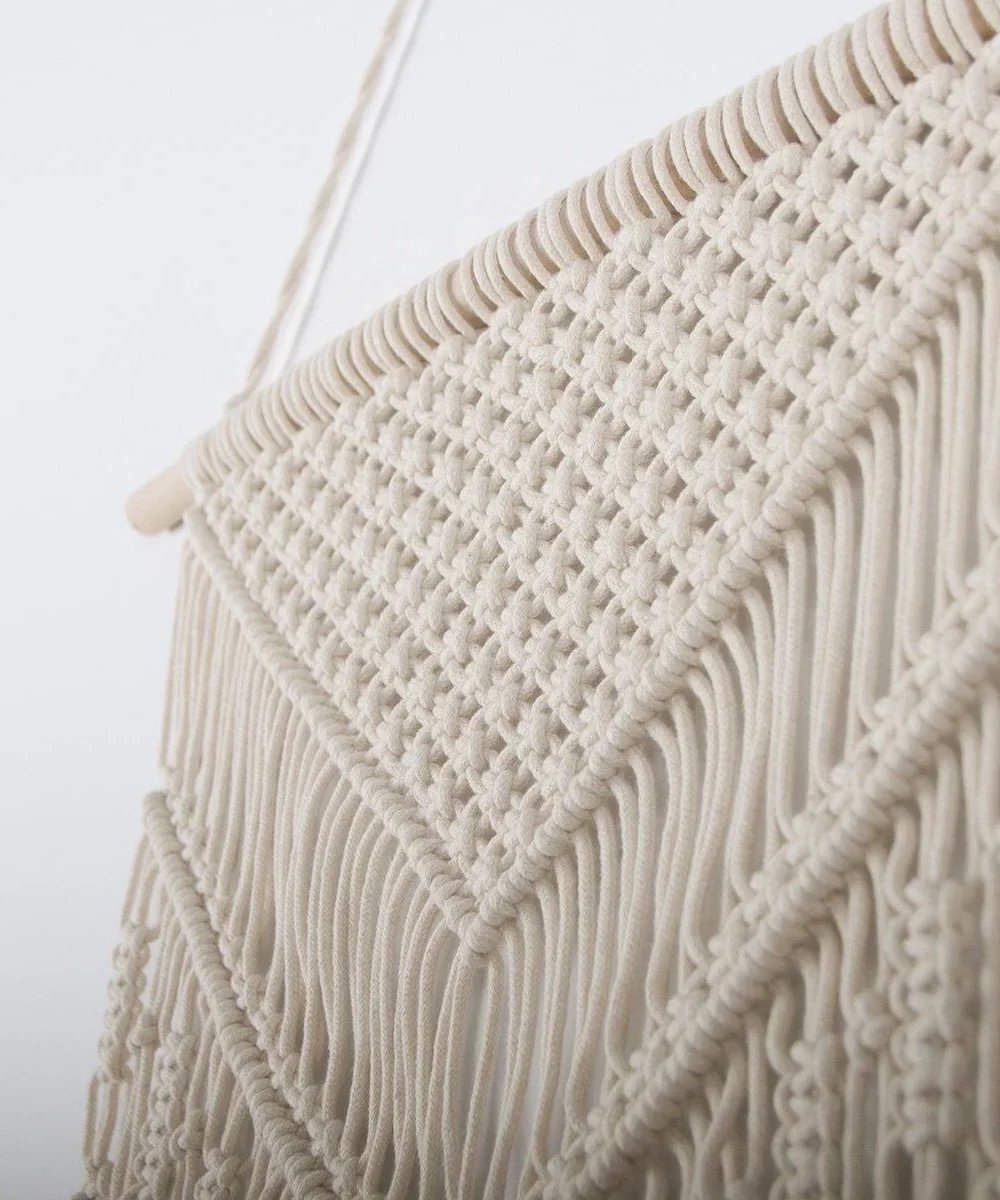 On adore la tenture tissée en macramé pour ajouter une touche bohème à notre décoration. Le macramé a l’avantage de pouvoir se marier avec tous les styles d’intérieur qu’il soit minimaliste, vintage, industriel ou moderne.