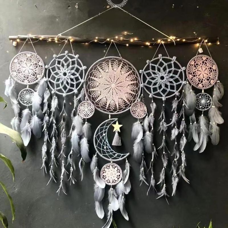 As-tu déjà rêver de métamorphoser la décoration de ta chambre pour la rendre plus accueillante et chaleureuse ? Alors ne cherche plus ! Ce kit composé de 5 attrape-rêve de grande taille forment ensemble une sublime tête de lit qui saura rendre tes nuits plus douces.