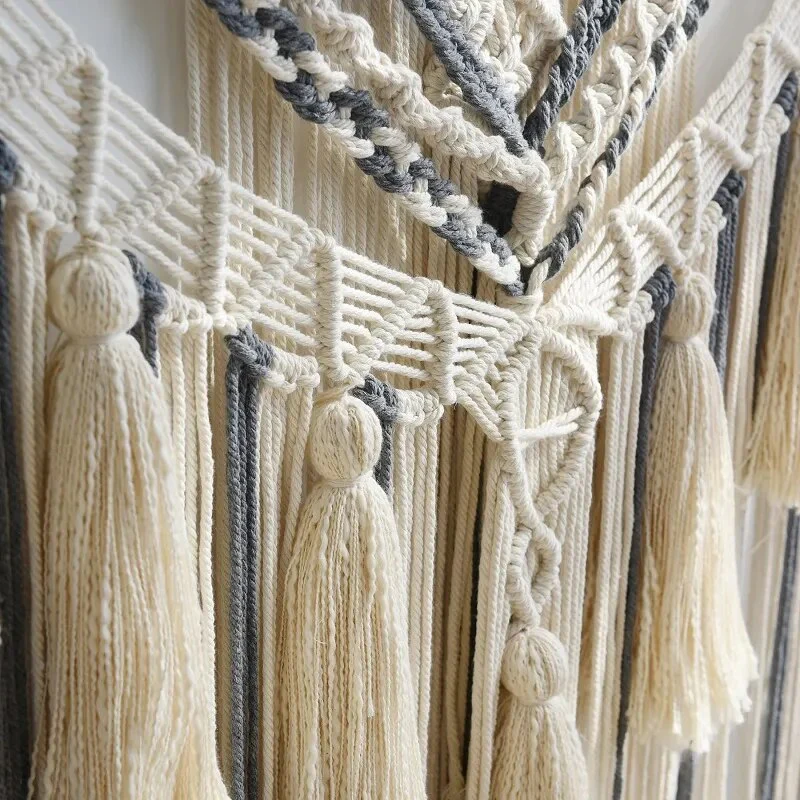 Dans votre chambre à coucher comme dans votre salon, cette grande tapisserie murale en macramé vous permettra de faire rayonner n’importe laquelle de vos pièces et de plonger dans un sommeil profond en toute circonstance tant vous vous sentirez bien à ses côtés, bercé par le doux murmurs de ses franges laissant passer l’air au travers. Adoptez une décoration qui vous ressemble, et apportez un charme bohème élégant et enchanteur au sein de votre foyer.