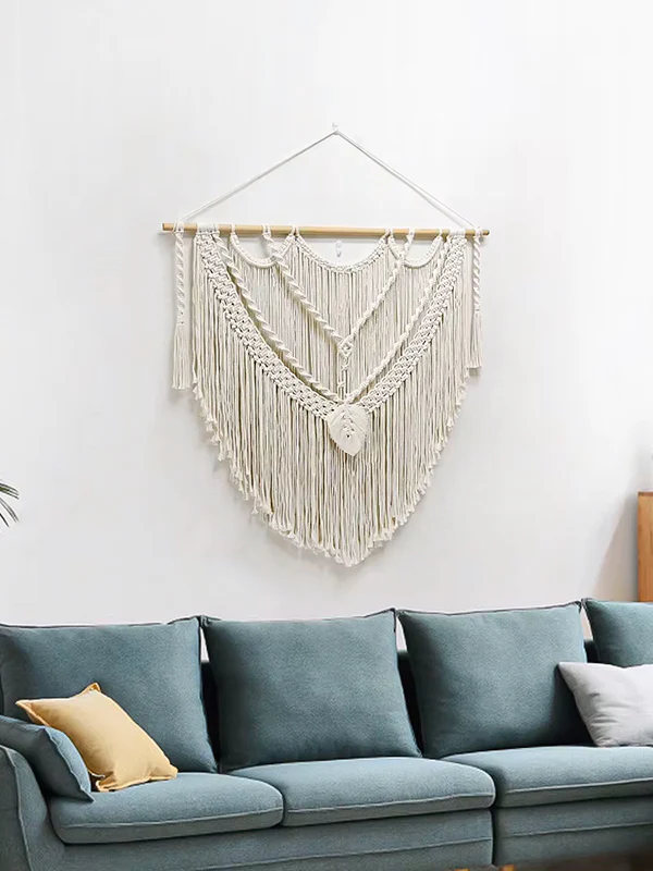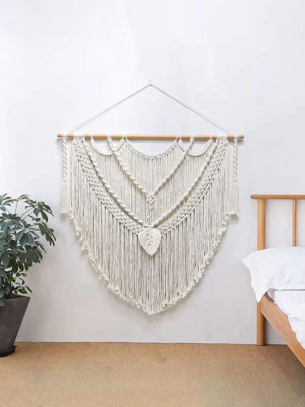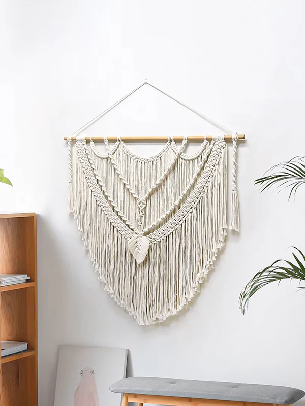 Le tissage symétrique de ce macramé mural est le fruit d’une conception manuelle délicate. Son allure riche et boho en fait une décoration murale aussi bien traditionnelle qu’atypique.
