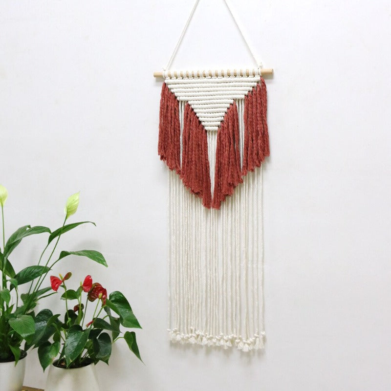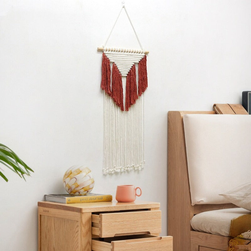 Découvrez notre tressage mural en 2 couleurs, blanc et rouge, fait-main en coton.