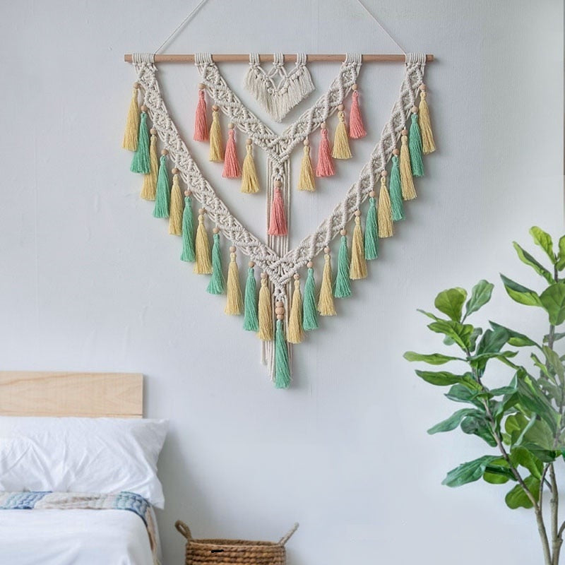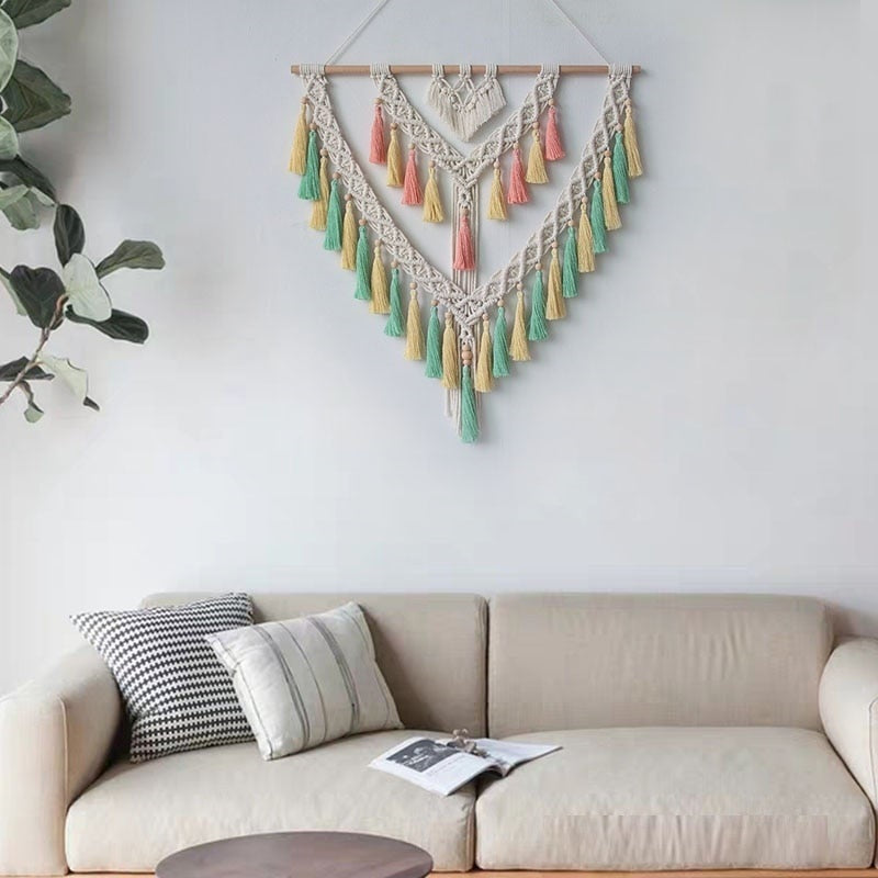 Le pompon tressage est un ajout parfait à n’importe quelle pièce de votre maison. Le design complexe et les couleurs vives créent une atmosphère tranquille, à la fois apaisante et bohème-chic ! Accrocher ce magnifique tressage mural sur l’un des murs vides de votre maison ne sera pas seulement esthétique, c’est aussi un moyen génial de mettre en valeur l’artisanat fait main. C’est un ajout parfait pour tous ceux qui veulent que leur espace soit rempli d’objets uniques !