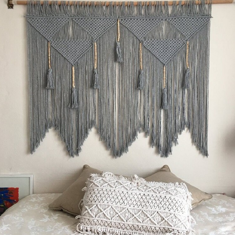 Tressage mural de couleur grise et de grande taille fait en coton.