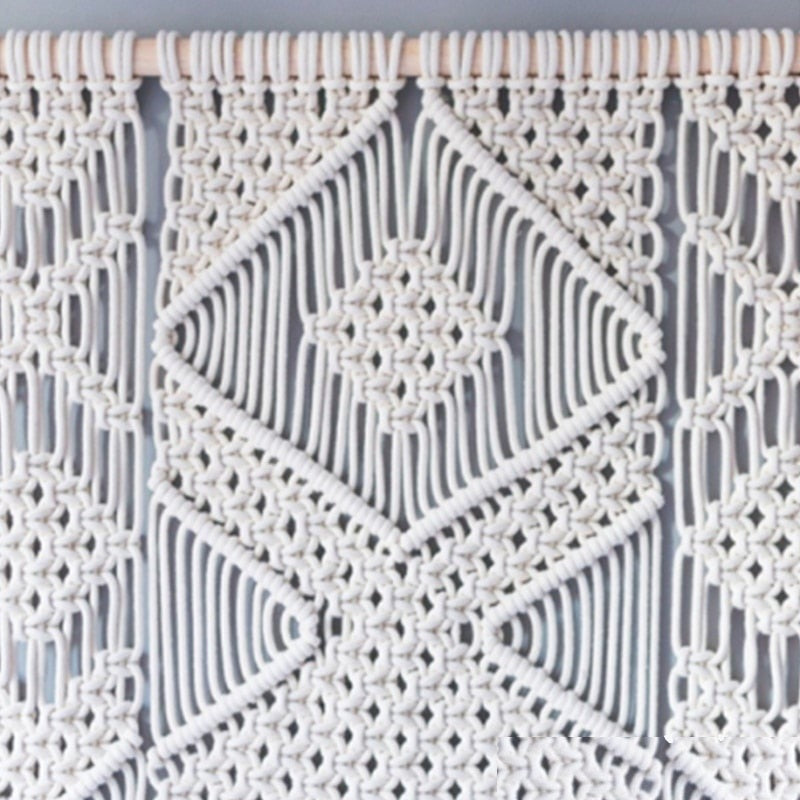 Un grand tressage mural taille XXL géométrique fait main en coton.