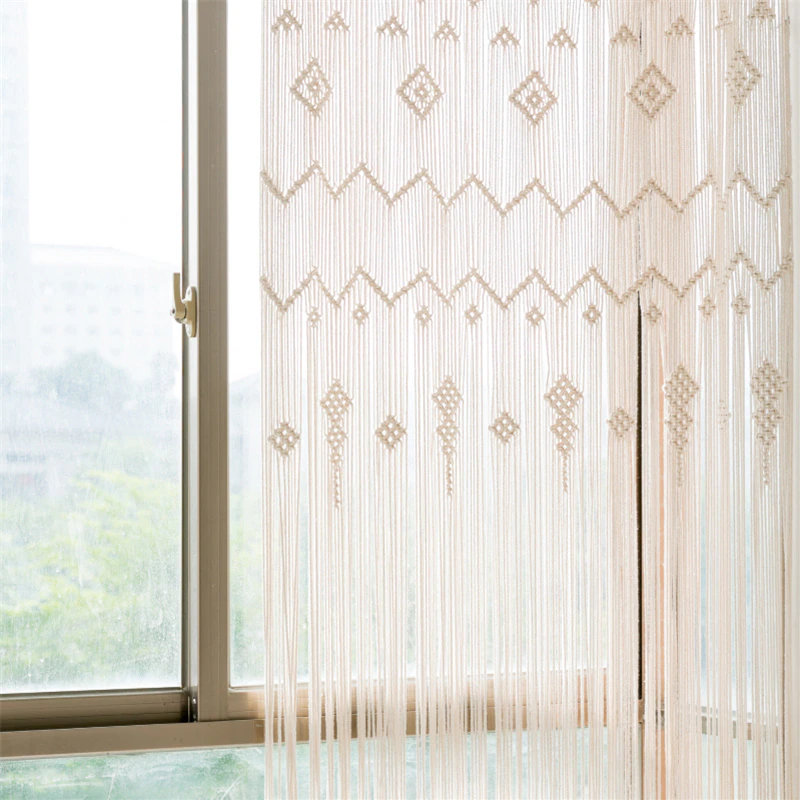 Un rideau en tressage simple et aéré fait en coton à la main.