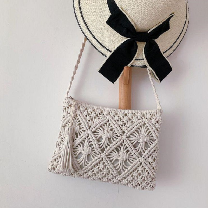 Vous recherchez un sac à main chic et unique qui rendra toutes vos amies jalouses ? Ne cherchez pas plus loin : notre splendide sac à main en tressage est là ! Cette pièce unique est fabriquée à la main à partir de lin. Elle est dotée d’une fine bandoulière et de plusieurs compartiments de rangements, parfaits pour transporter tous vos objets essentiels. Petit et fin, c’est l’accessoire bohème idéal. Alors n’hésitez pas et ajoutez une touche de luxe à votre look de tous les jours avec notre étonnant tressage en sac à main !