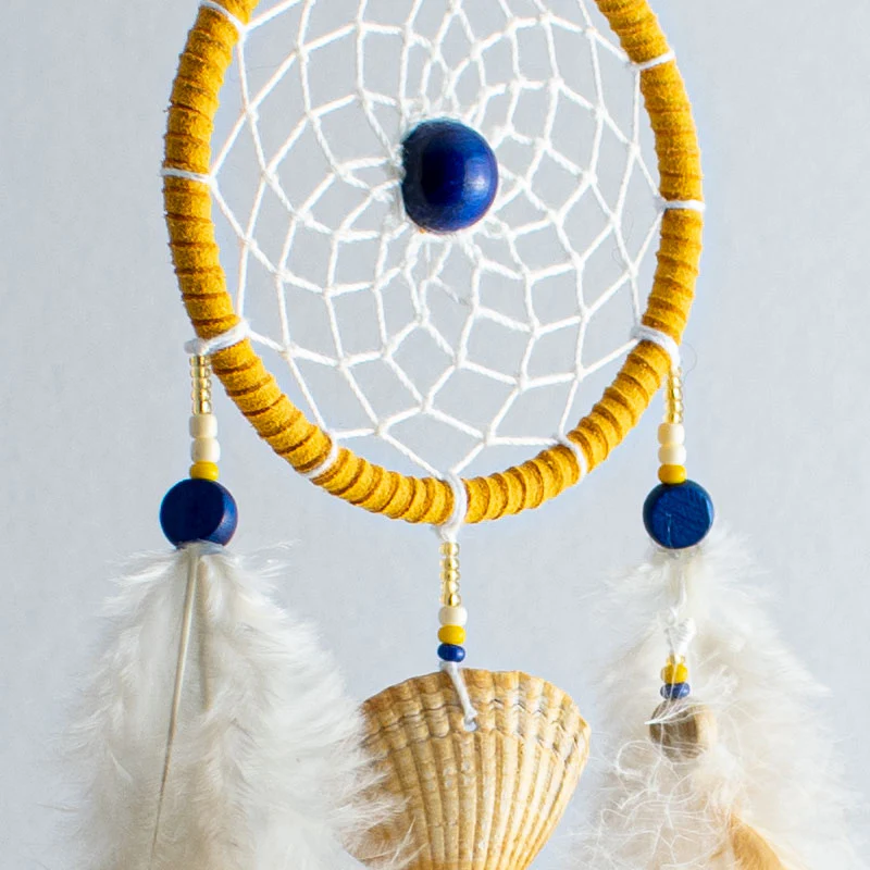 Petit attrape-rêve jaune et bleu “Sable chaud”