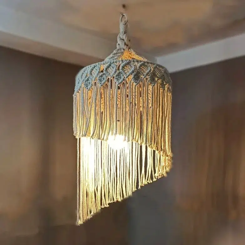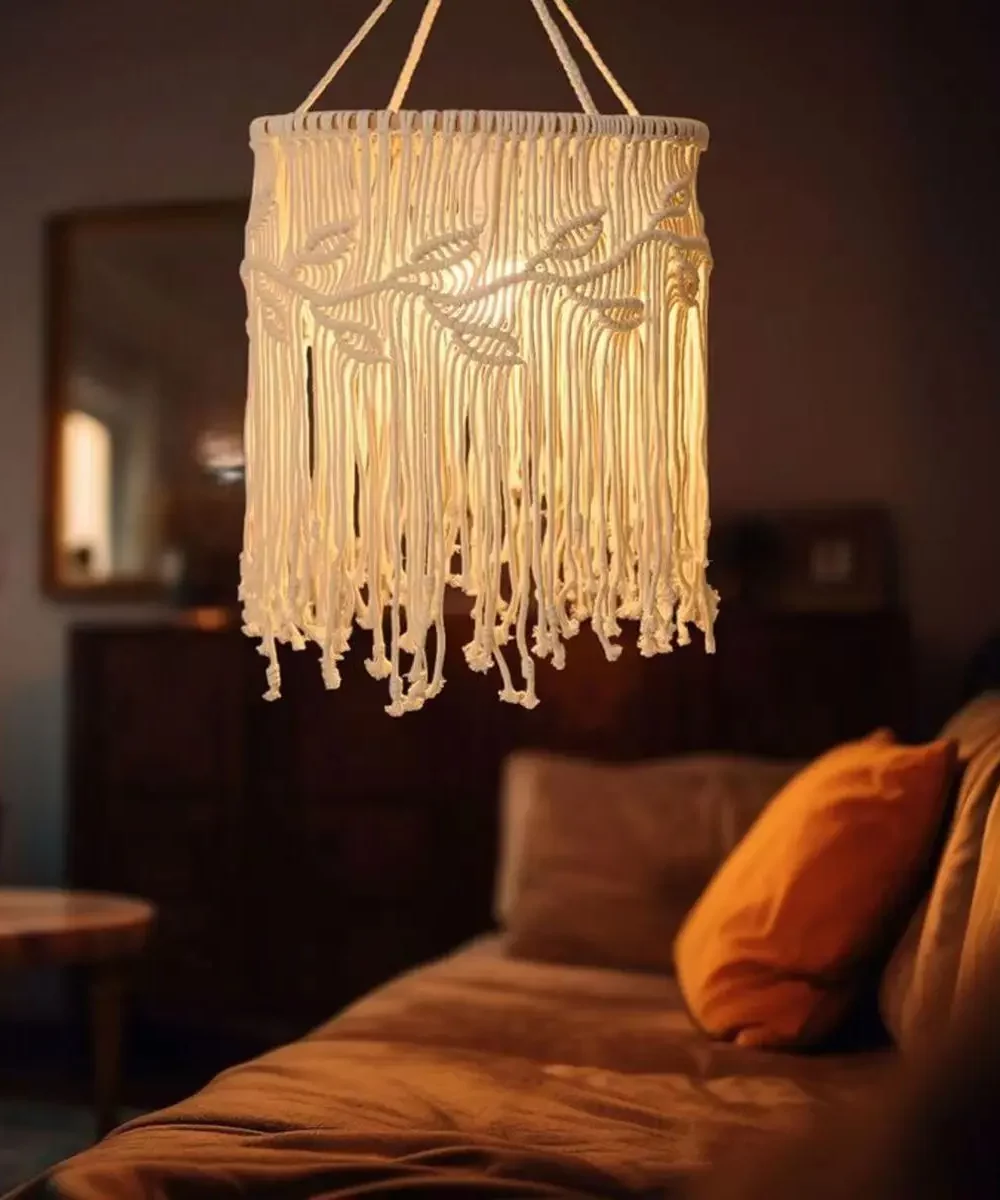 Abat-jour macramé tendance avec pompons