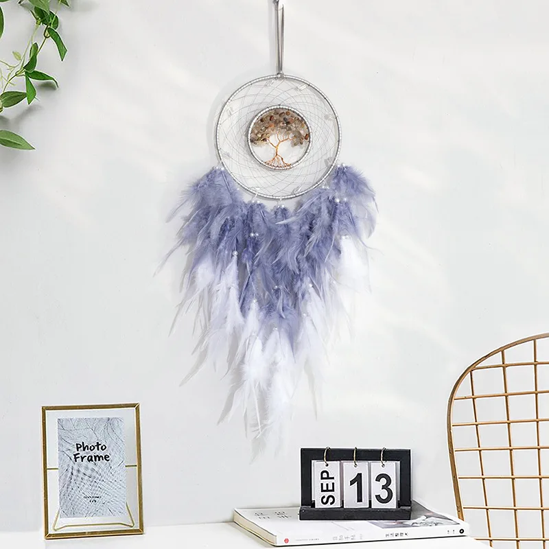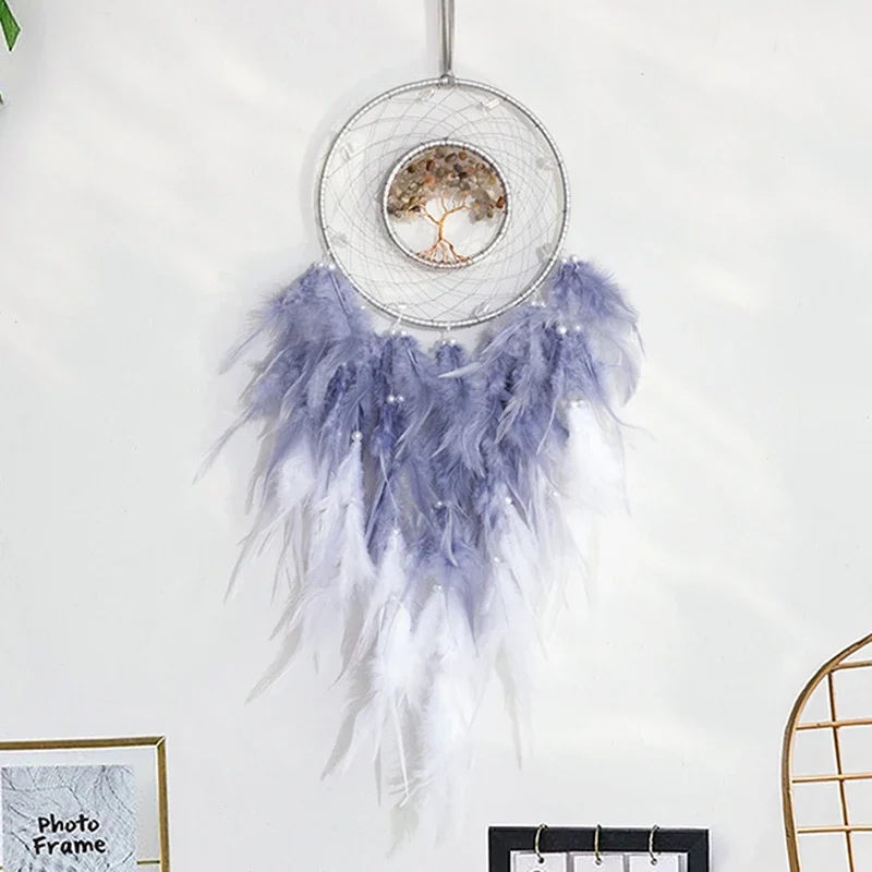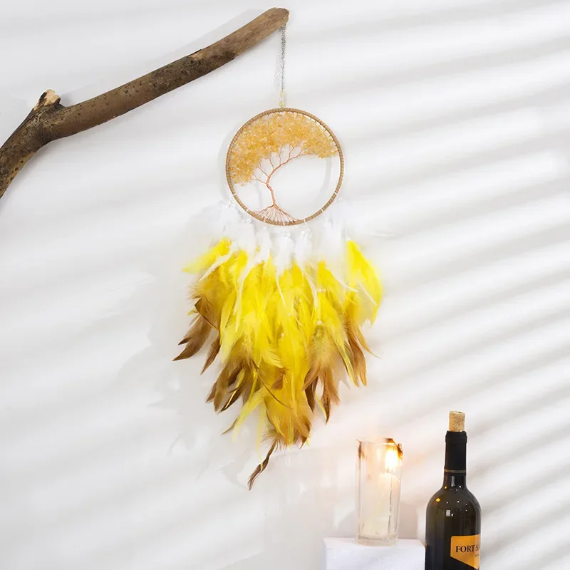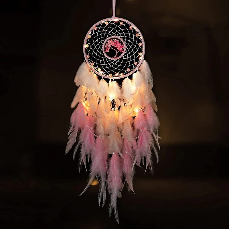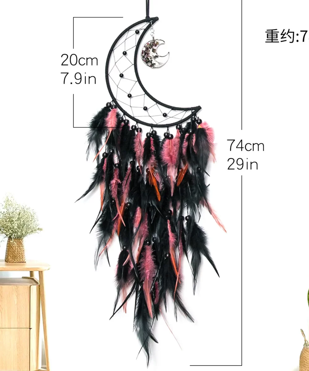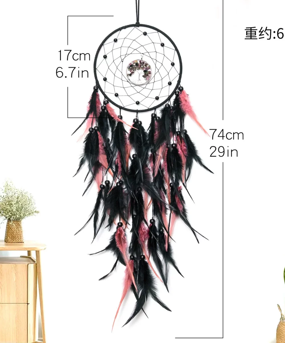 Attrape – rêves en tourmaline noire et rose avec plumes