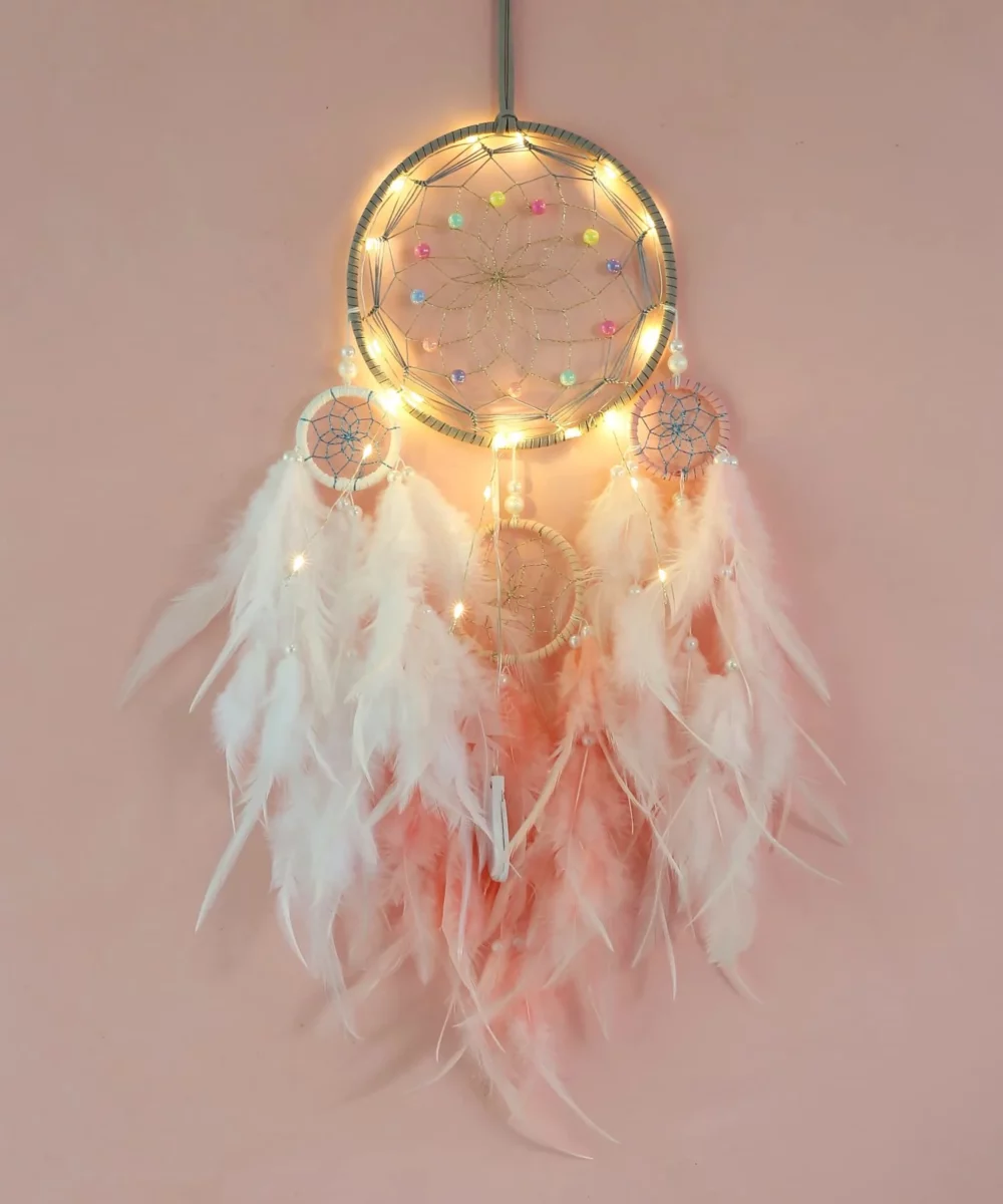 Attrape-rêves à LED avec plumes à double cercle Olivenorma