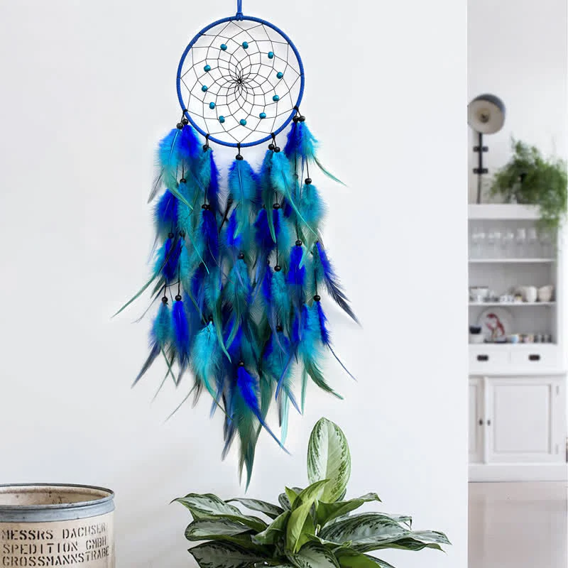 Attrape-rêves en plumes bleues contre le mauvais œil