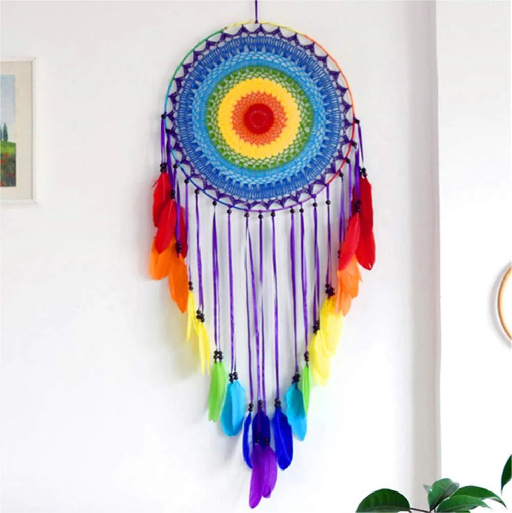 Attrape-rêves en plumes colorées tissées à la main de style nordique Olivenorma