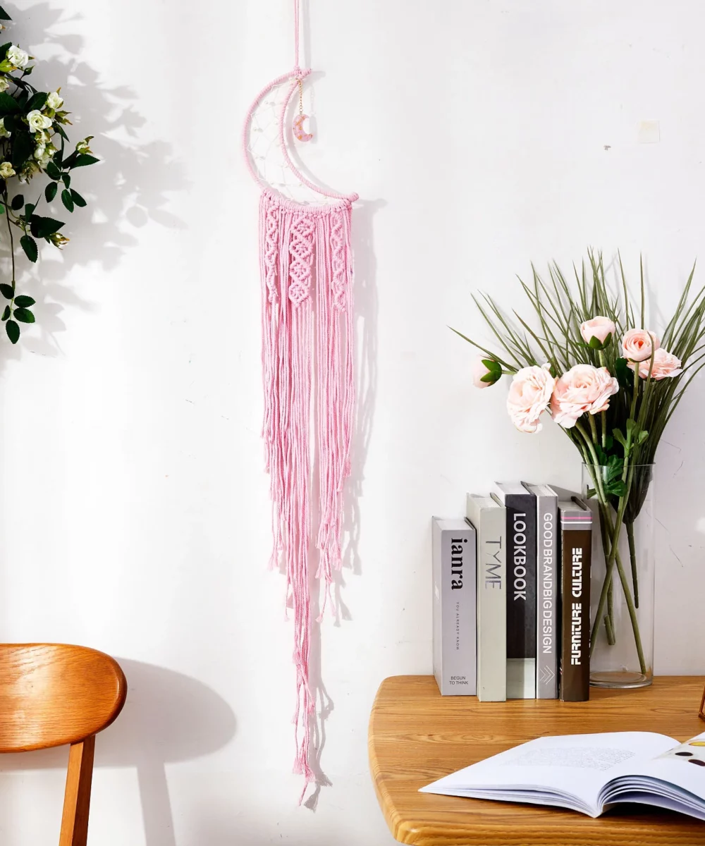 Attrape-rêves en macramé avec pompons et étoile de lune Olivenorma