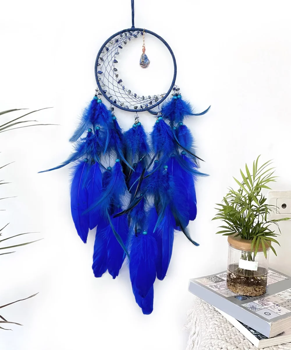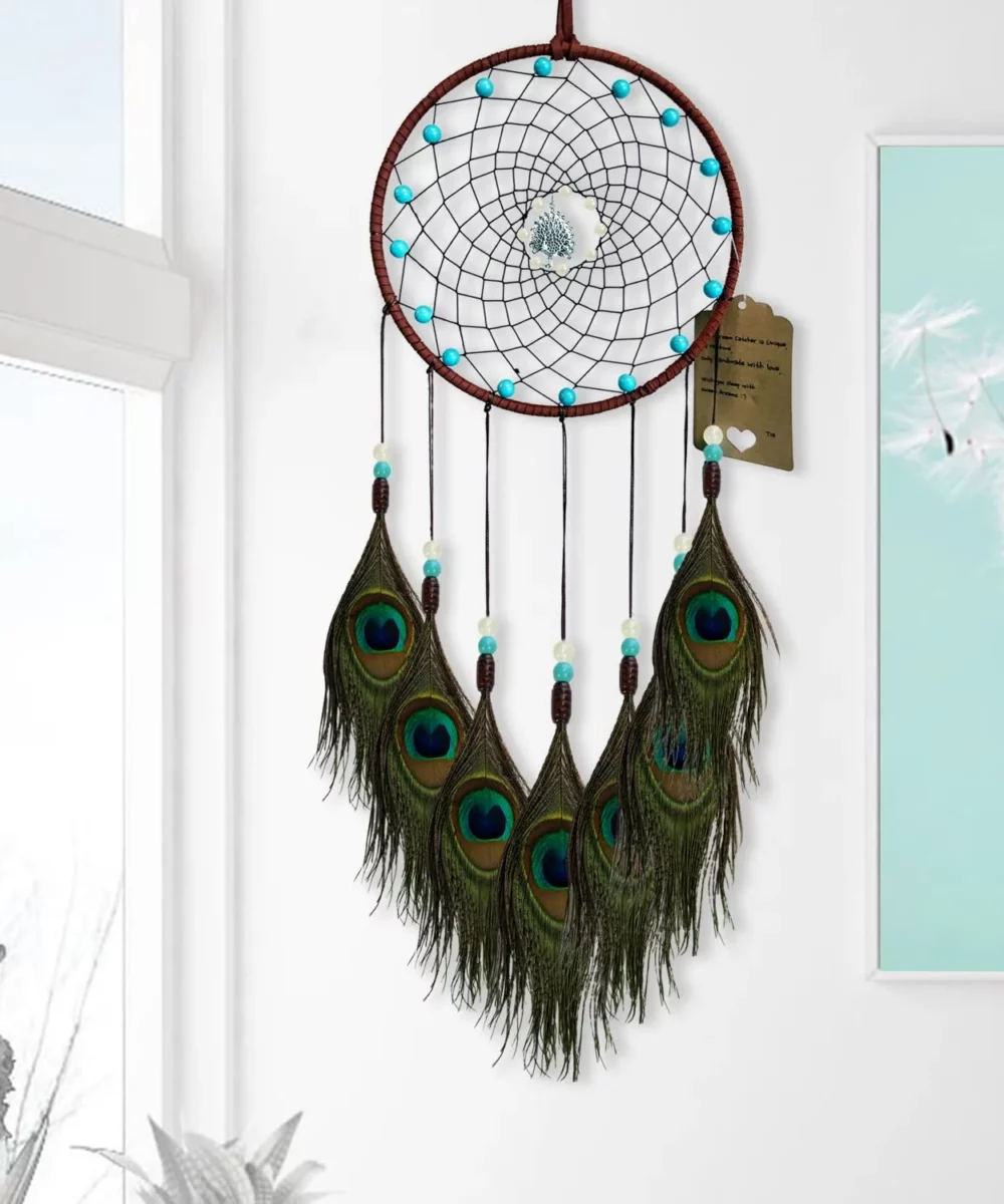 Attrape-rêves en plumes de paon tressées avec perles en pierre naturelle Olivenorma