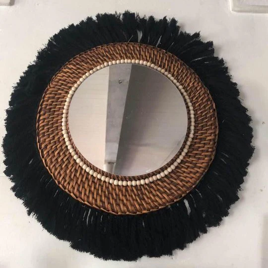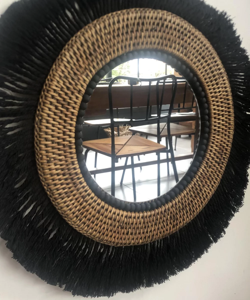 Miroir en rotin et coton macramé tendance BOHEME CHIC