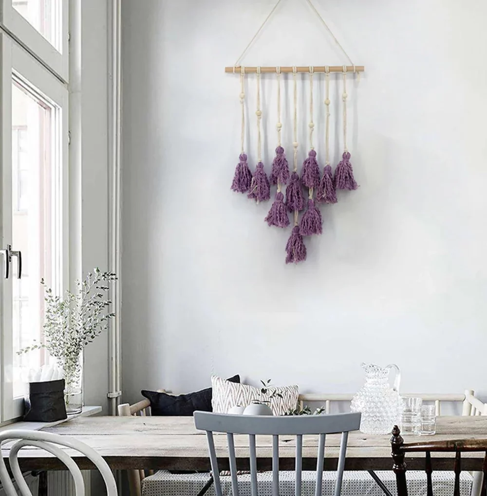 Tenture Macramé Pompon Violet
