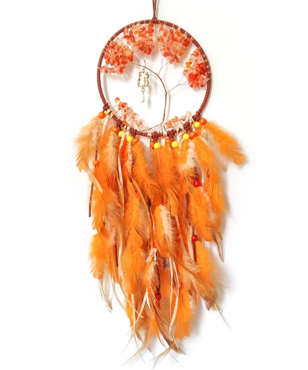 Pendentif Arbre de Vie Chaton Olivenorma Attrape-rêves orange