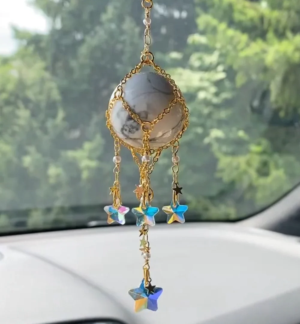 Carillon éolien suspendu en pierre naturelle et cristal originale Olivenorma