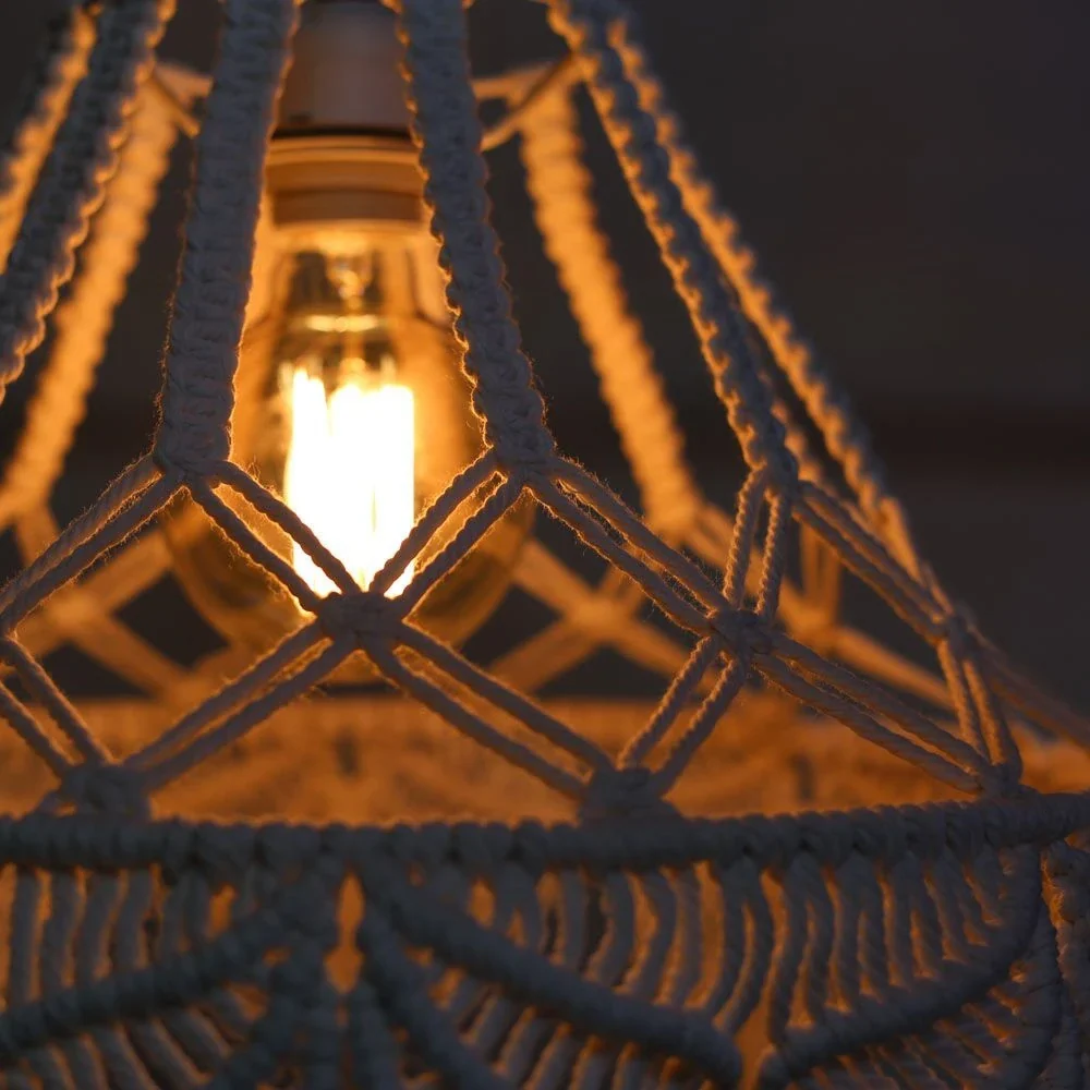 Cet abat-jour bohème en macramé apporte une touche de douceur et de convivialité à votre intérieur, créant une ambiance chaleureuse et apaisante dans votre chambre ou salon. Son design, avec ses pompons en macramé, s’intègre parfaitement dans une décoration bohème, diffusant une lumière douce et tamisée.