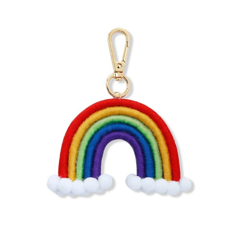 Un arc-en-ciel en porte clé fait en coton tressage et zinc.