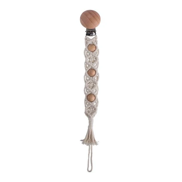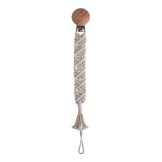 Attache Sucette Macramé : une pièce écologique fait en coton Eco-friendly et en bois