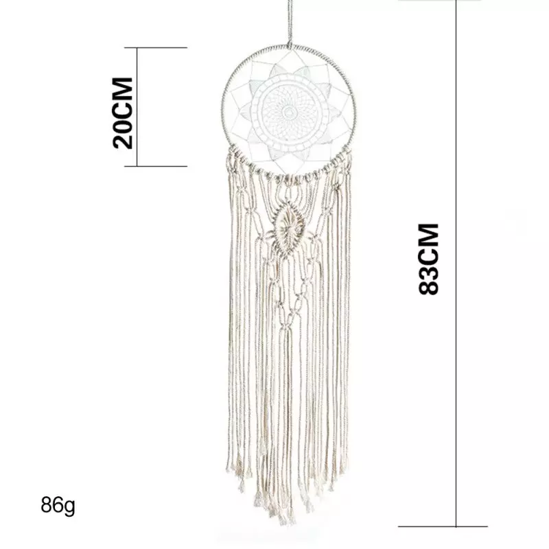 Parcours ce Somptueux tissage en Macramé et éblouis-toi devant la précision de ces Nœuds ainsi que cette splendide Dentelle de soie. Cette ravissante création au style Attrape-rêve créera chez-toi une décoration chic, unique et merveilleuse