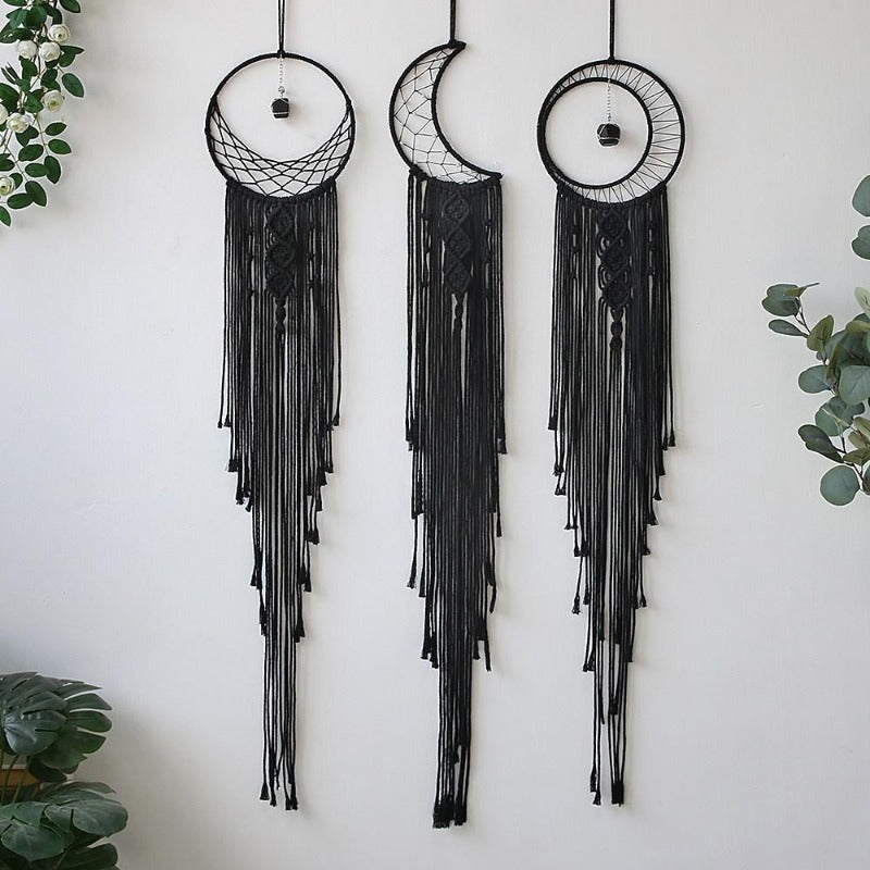 Un attrape rêve en tressage noir disponible en plusieurs formes.