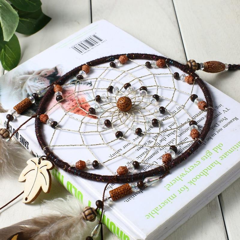 Ses magnifiques perles en bois ciselées viendront s’ajouter au raffinement de ses plumes naturelles. Le motif rosace en flanelle de coton très résistante apportera équilibre et solidité à l’ensemble.