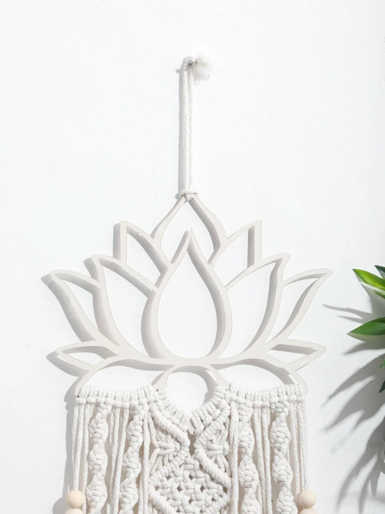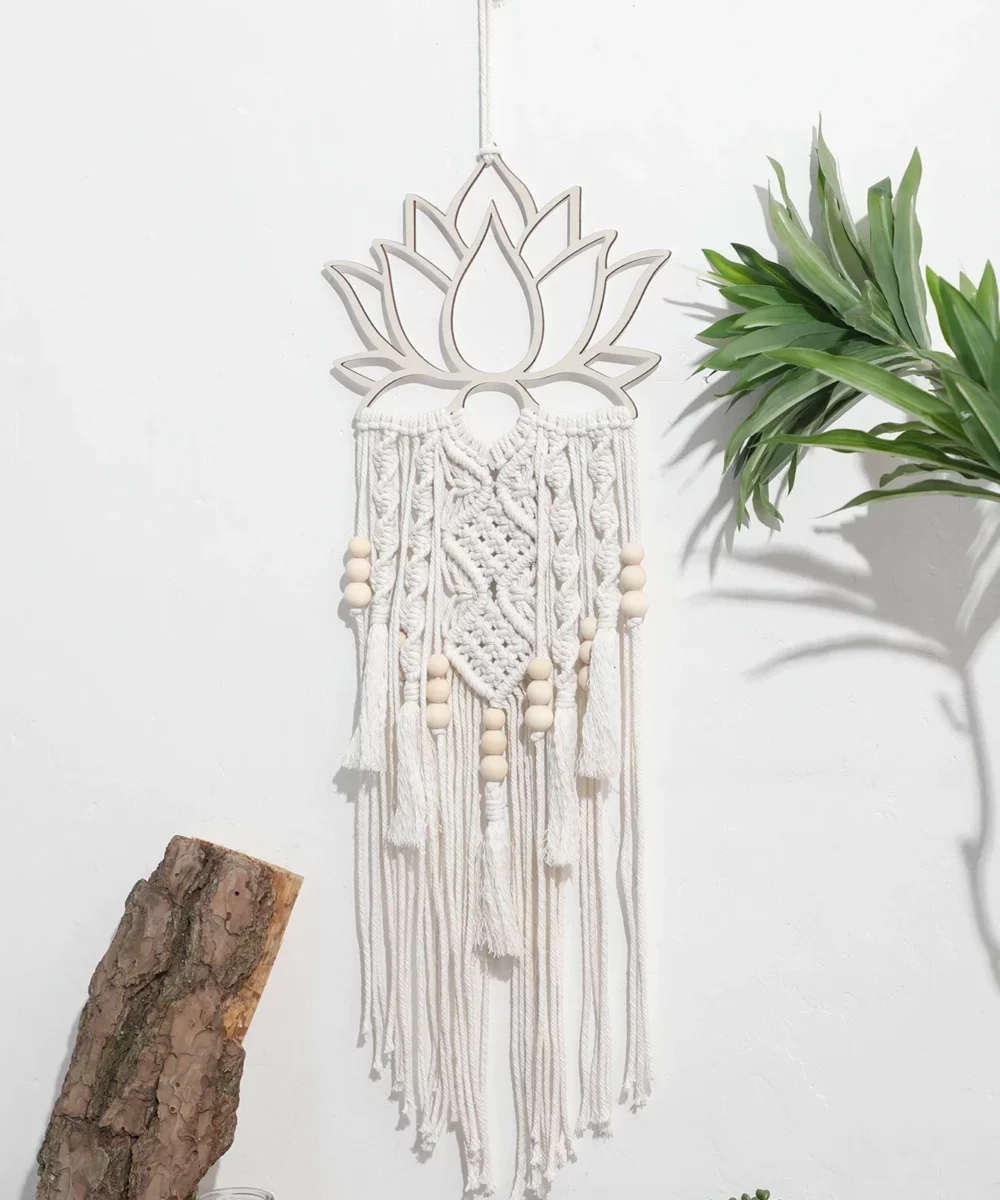 Transformez votre espace en un sanctuaire de paix et de sérénité avec l'”Attrape-rêve macramé fleur de lotus”, un objet de décoration qui combine la symbolique de la fleur de lotus avec l’élégance du macramé, créant une ambiance apaisante et spirituelle dans votre intérieur.