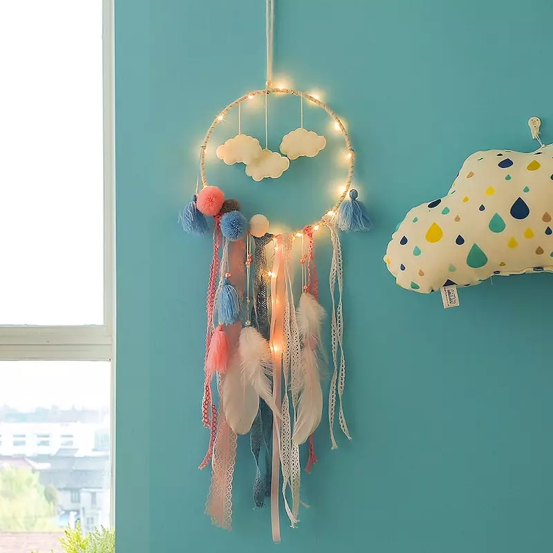 Tu es à la recherche d’un joli Attrape-rêve à ajouter dans la chambre de ton enfant ? Accroche ce sublime Attrape-rêve en forme de Nuage juste au-dessus de son lit et laisse-le Bercer ses nuits !