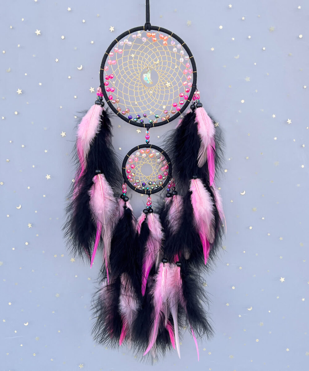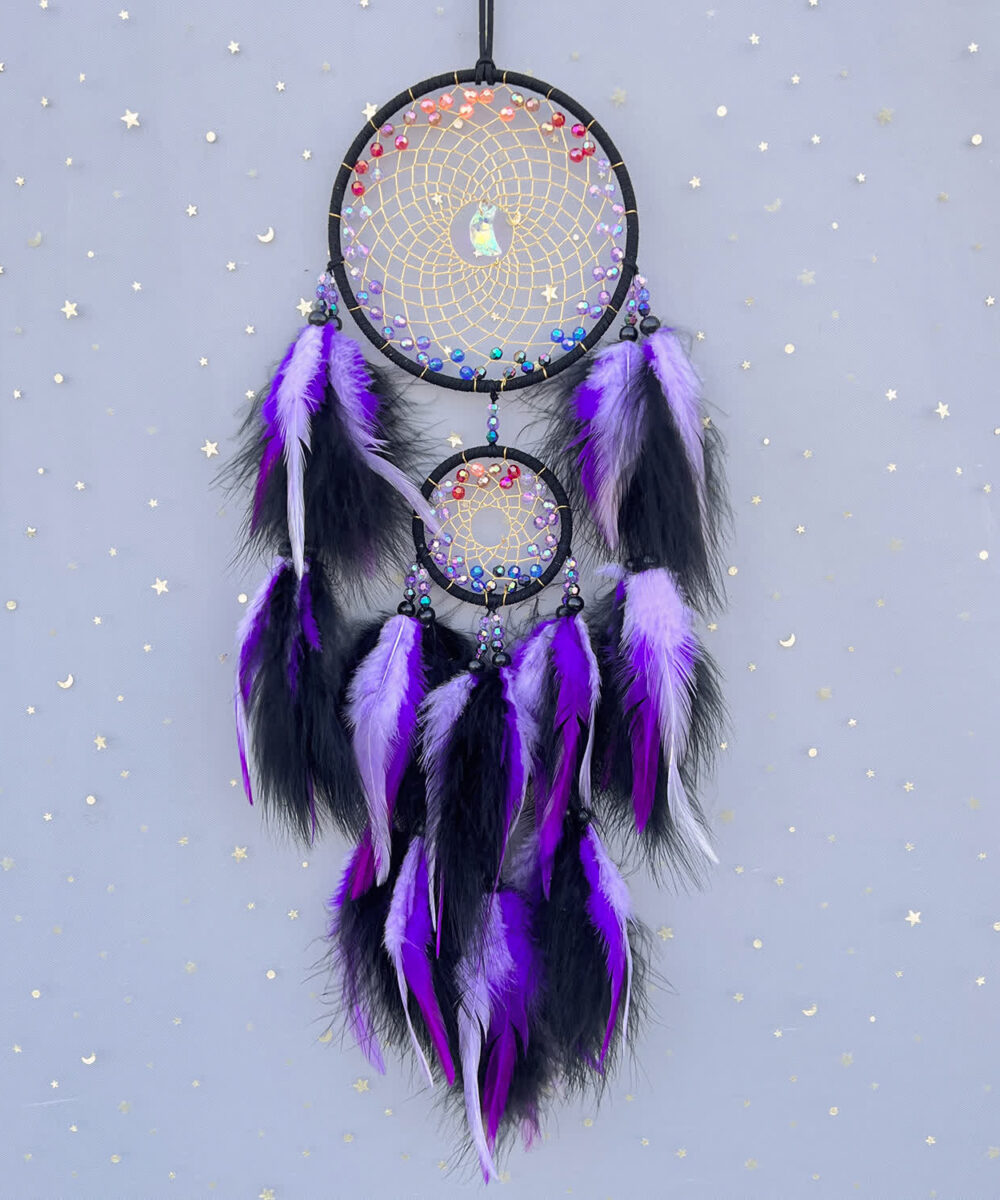 L’attrape-rêves est un talisman protecteur utilisé pour protéger les gens des cauchemars et des mauvais rêves. Ce porte-bonheur était généralement utilisé pour les jeunes enfants et suspendu au-dessus de leur berceau ou de leur lit. Les cultures amérindiennes croient que les bons et les mauvais rêves remplissent l’air la nuit.