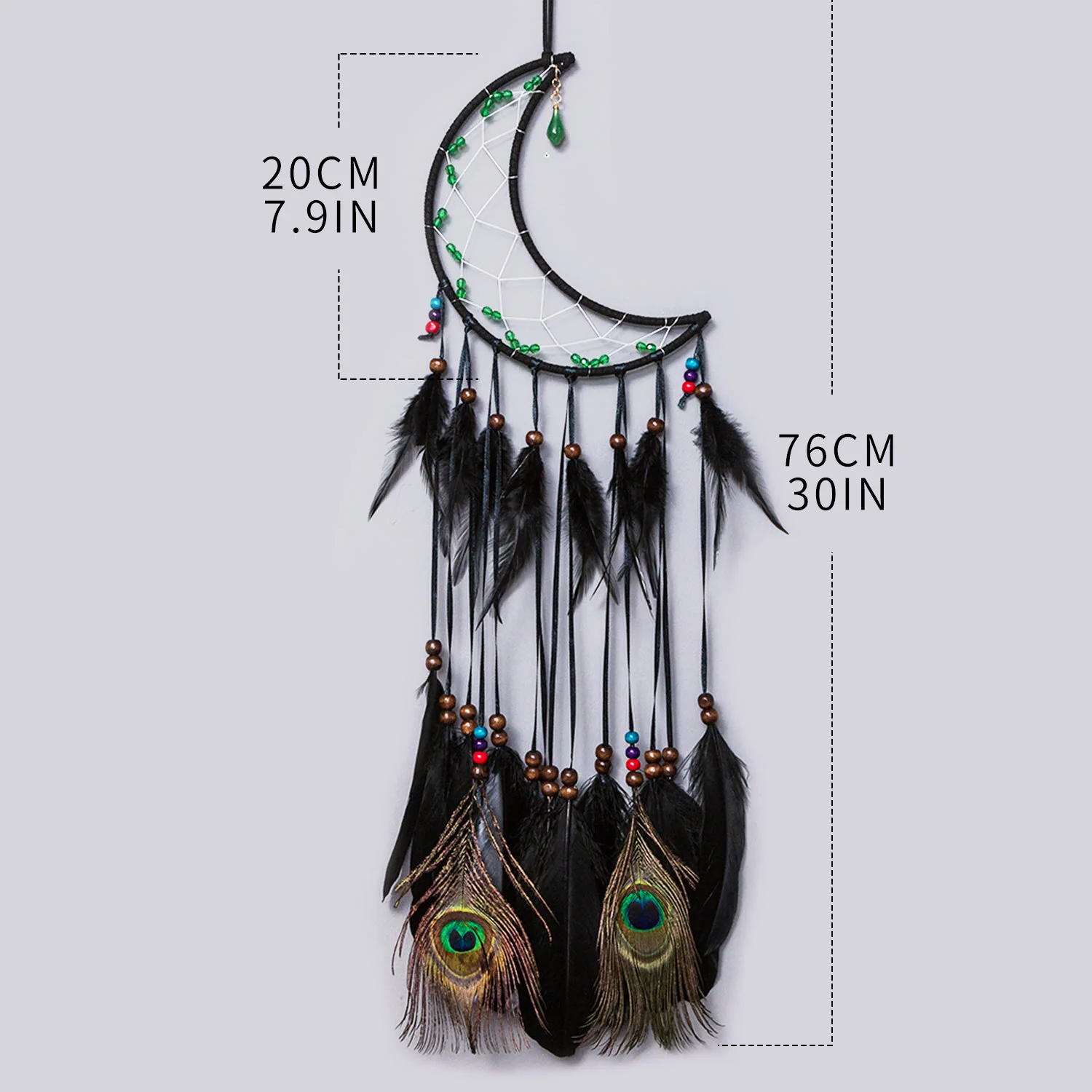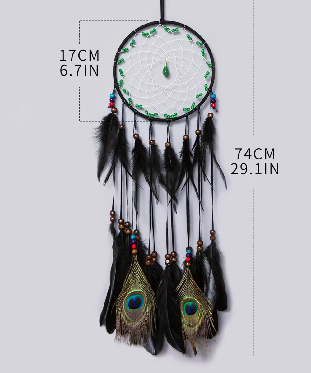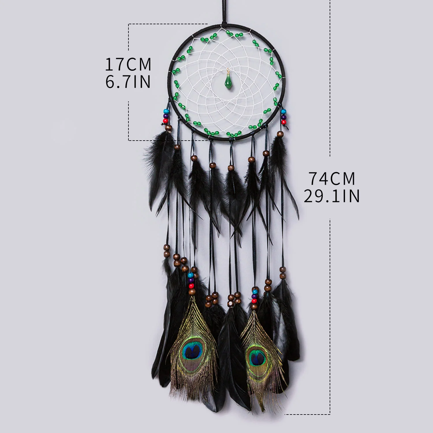 - Nom : Attrape-rêves en plumes de paon en aventurine verte naturelle Olivenorma