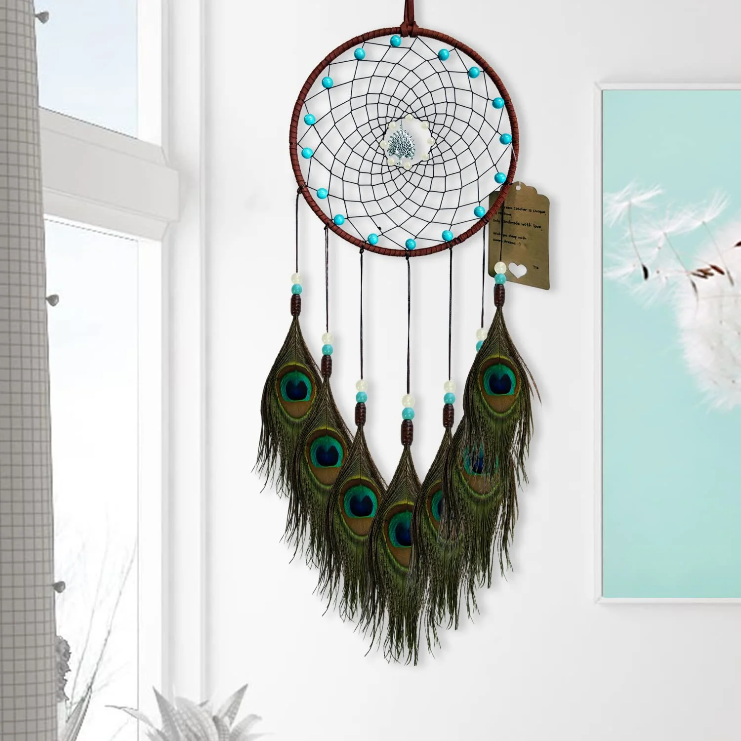 - Nom : Olivenorma Glow Beads Attrape-rêves en plumes de paon fait main