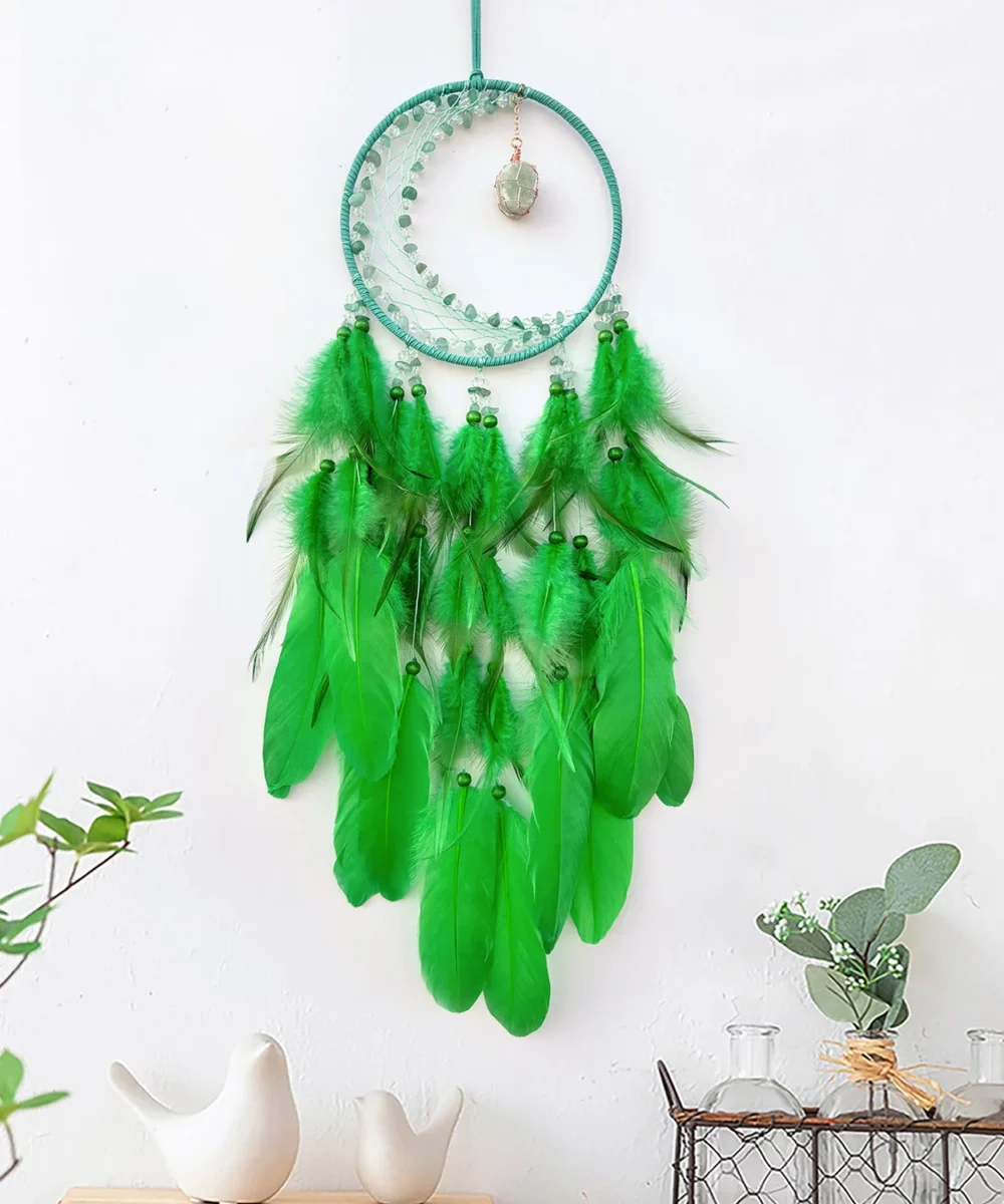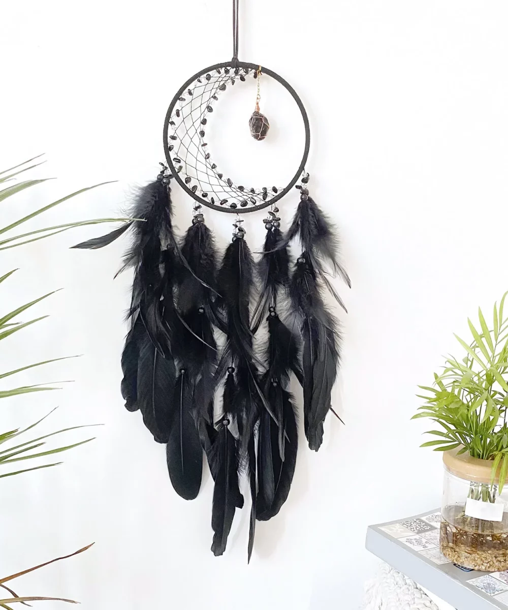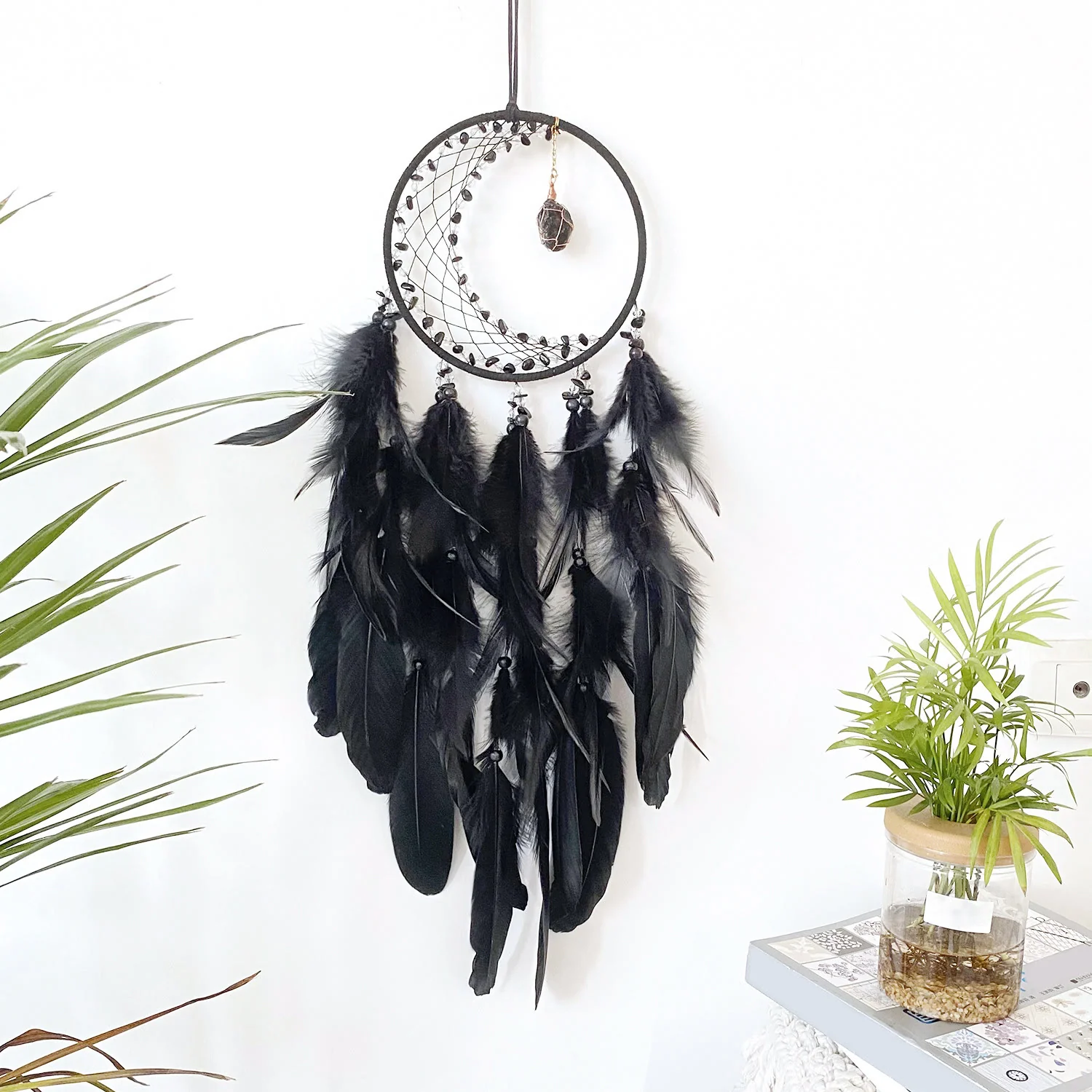 - Nom : Attrape-rêves indien en forme de croissant de lune avec pierres précieuses brutes