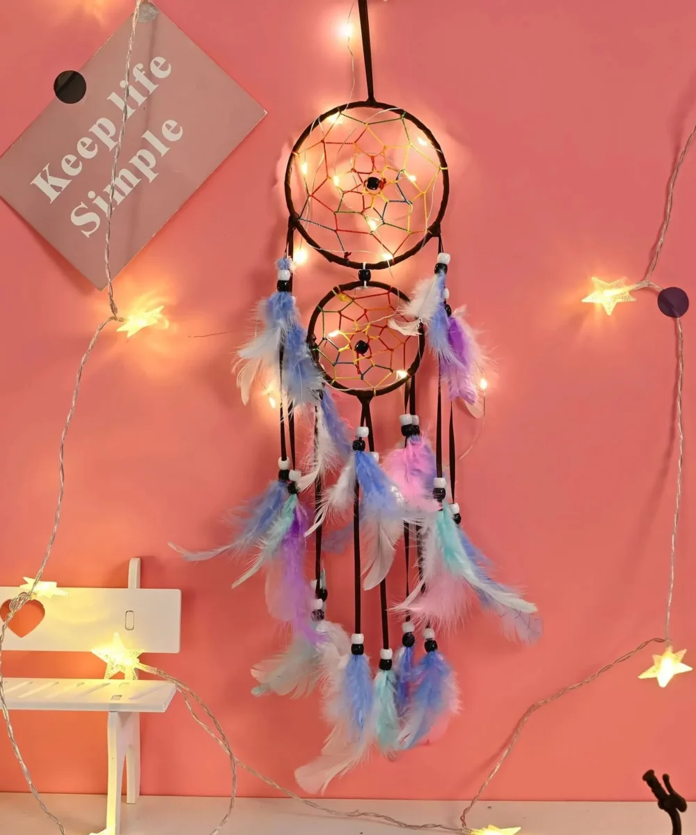 Avec une hauteur impressionnante de 43 cm, cet attrape-rêves devient le point central de n’importe quelle pièce, attirant l’attention de tous ceux qui le voient. Accrochez-le au-dessus de votre lit, près de votre espace de méditation ou dans tout endroit où vous souhaitez cultiver des rêves inspirants et positifs.