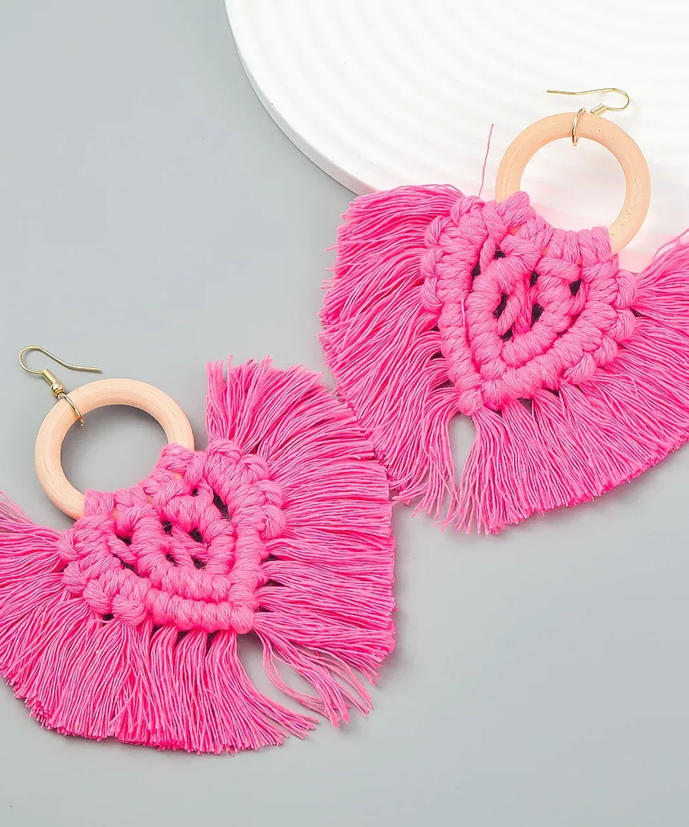 Apportez une touche d’éclat estival à votre garde-robe en optant pour nos boucles d’oreilles en bois, disponibles dans une palette de couleurs vives. Chaque paire combine avec élégance un anneau en bois naturel, un crochet en alliage de zinc, et est finie avec du coton naturel tissé à la main, offrant un style à la fois rustique et coloré.