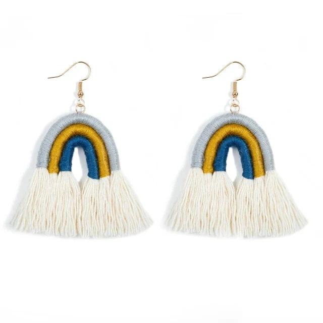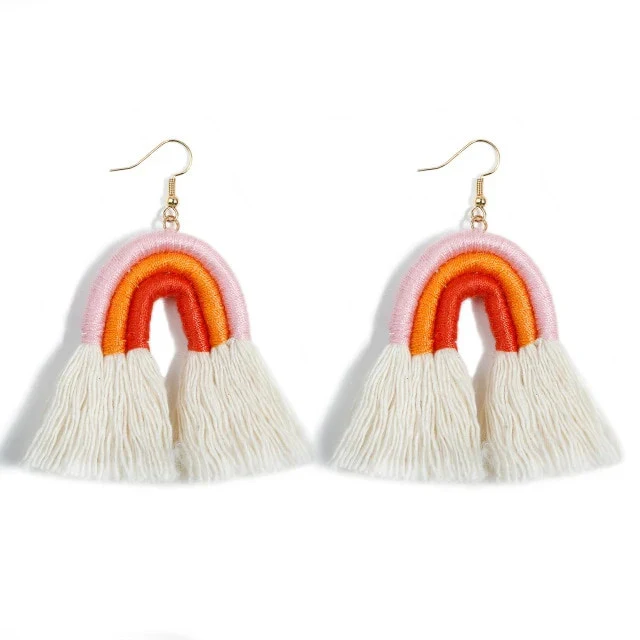 Succombez à notre paire de Boucle Oreille Macramé en forme d’arc en ciel pour des accessoires colorés