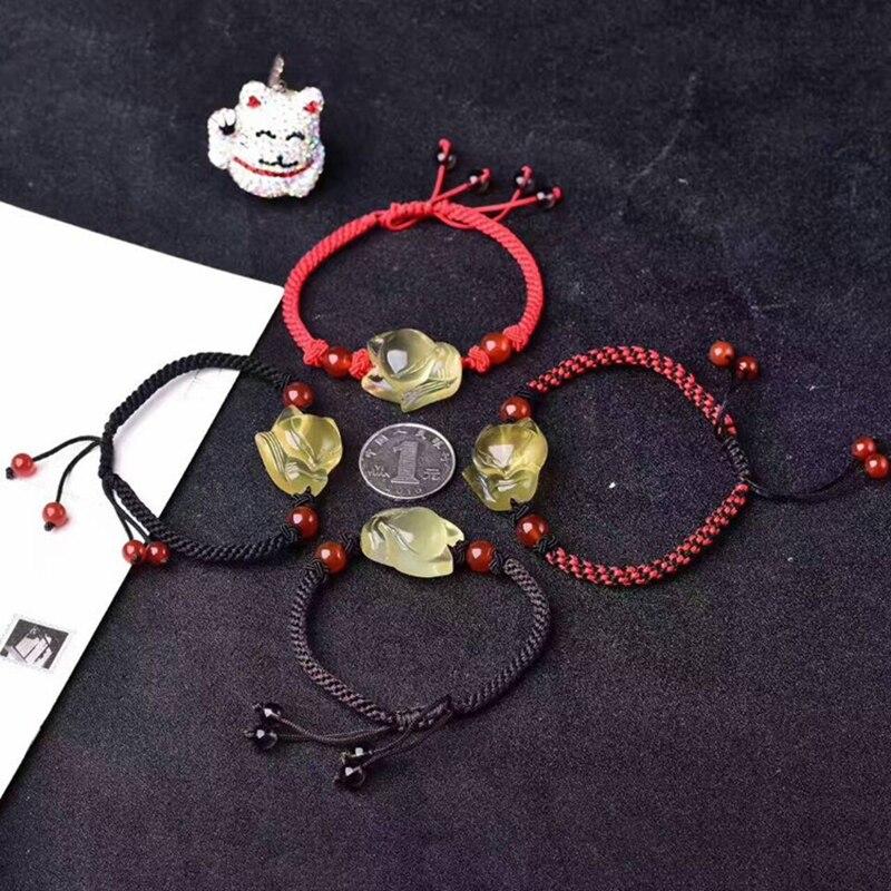 Ce bracelet en tissage tressage est fabriqué à la main à partir de matériaux de haute qualité. Le tissage en coton noir ou rouge est orné de belles perles de cristal rouge et d’un quartz jaune taillé en forme de renard. Le renard est associé à la malice et à l’au-delà dans de nombreuses cultures, tandis que le quartz jaune est une pierre puissante permettant d’éloigner les influences négatives, la nervosité, la fatigue, le stress, les angoisses et la maladie.
