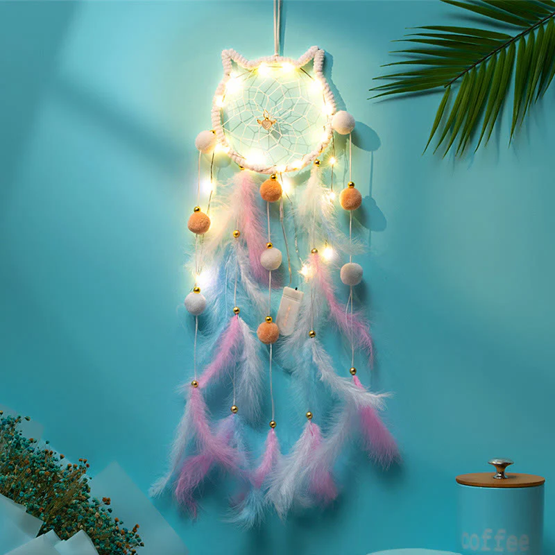 L’attrape-rêves en forme de chat mignon présente de charmants motifs en forme de chat et des pompons doux ainsi que des plumes, créant un effet ludique mais apaisant. L’attrape-rêves complexe aide à dissiper l’énergie négative, tandis que les carillons éoliens produisent des sons apaisants. Accrochez-le dans les chambres ou les espaces de vie pour apporter une touche de positivité, de détente et de joie à votre environnement.
