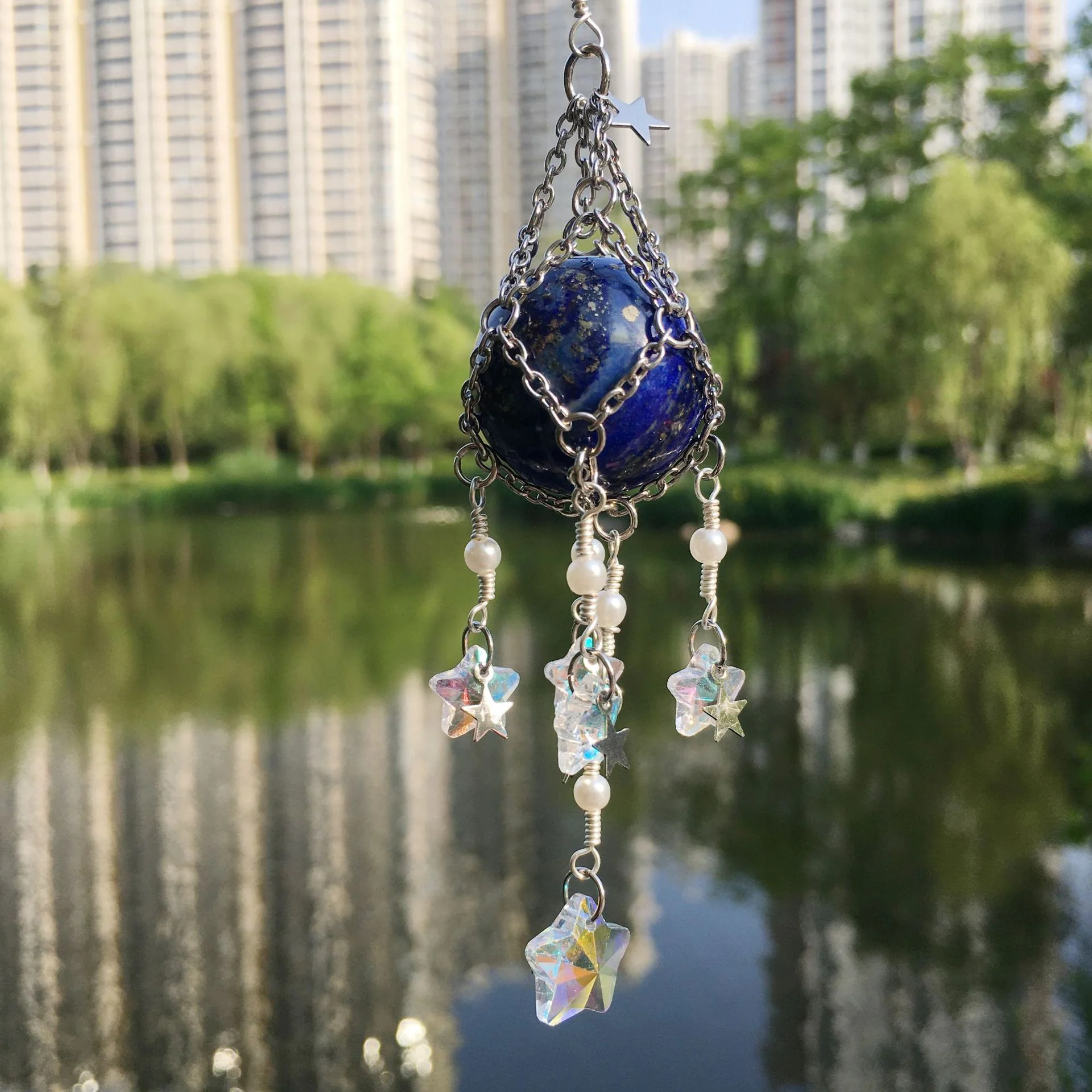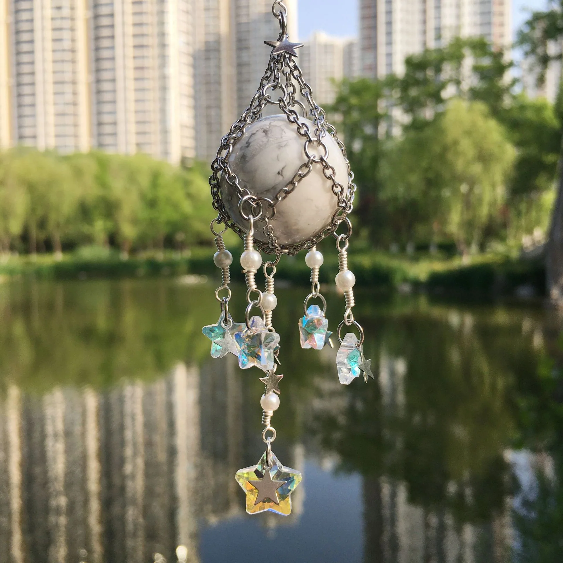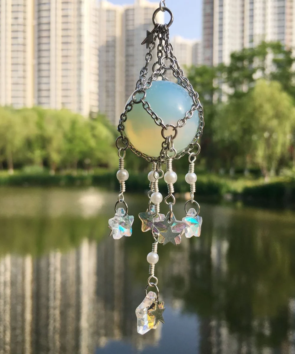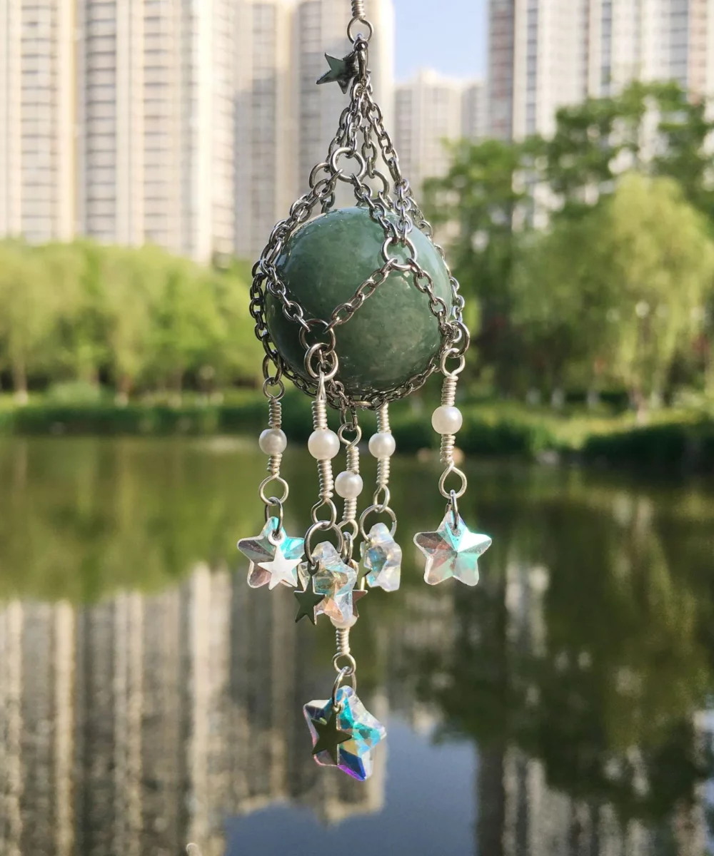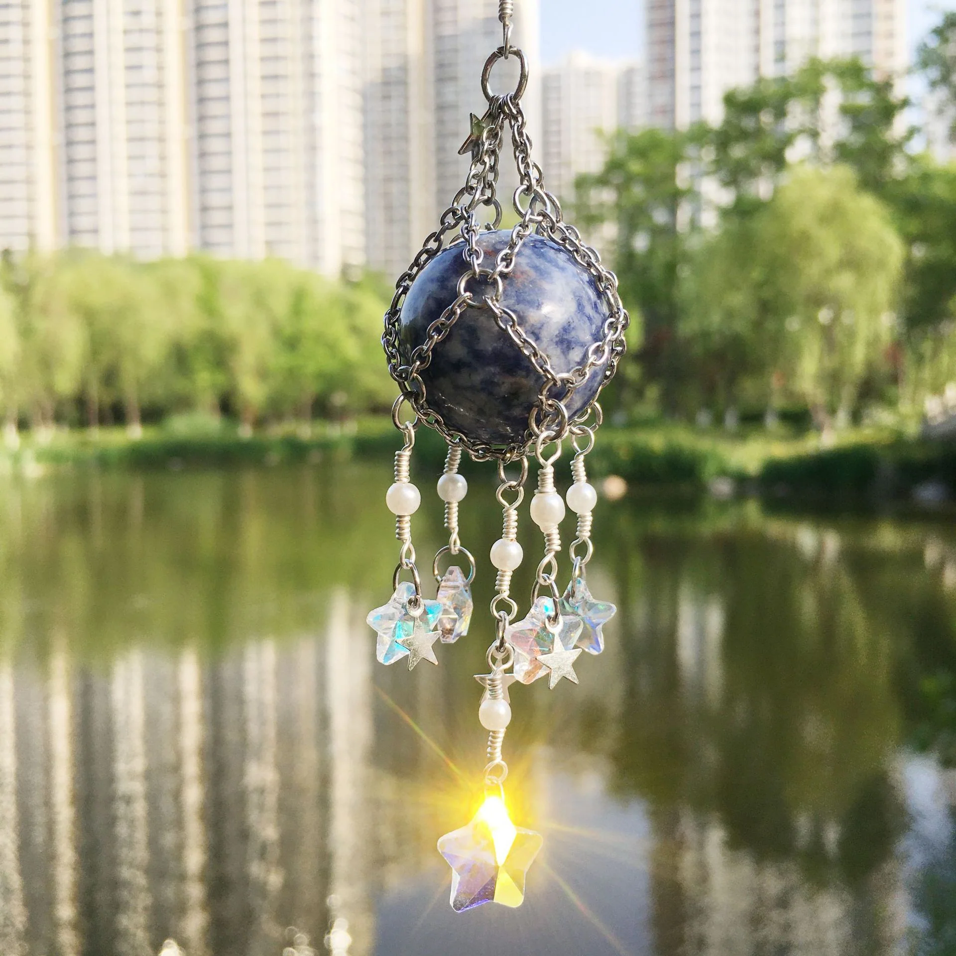 - Nom : Carillon éolien suspendu en pierre naturelle et cristal originale Olivenorma