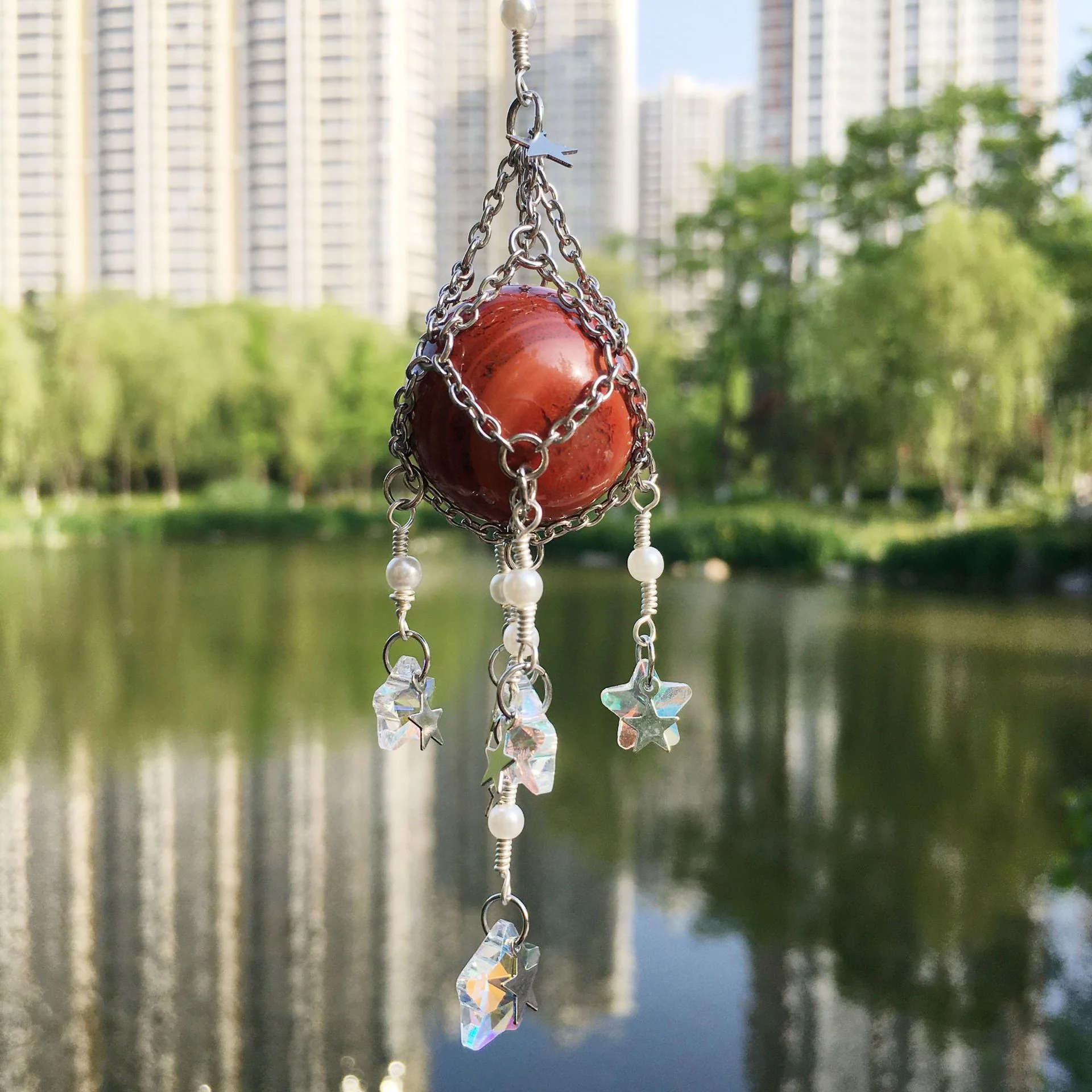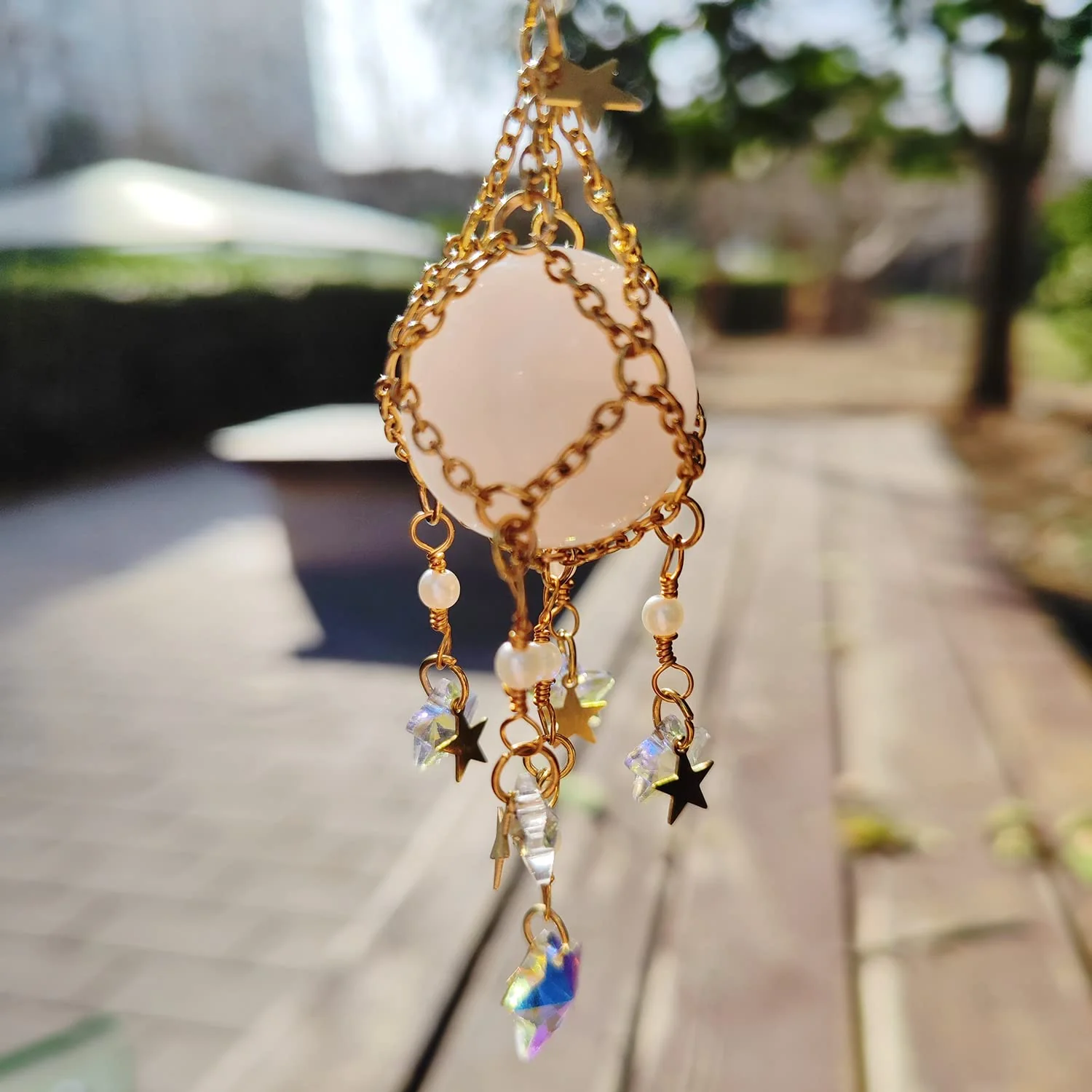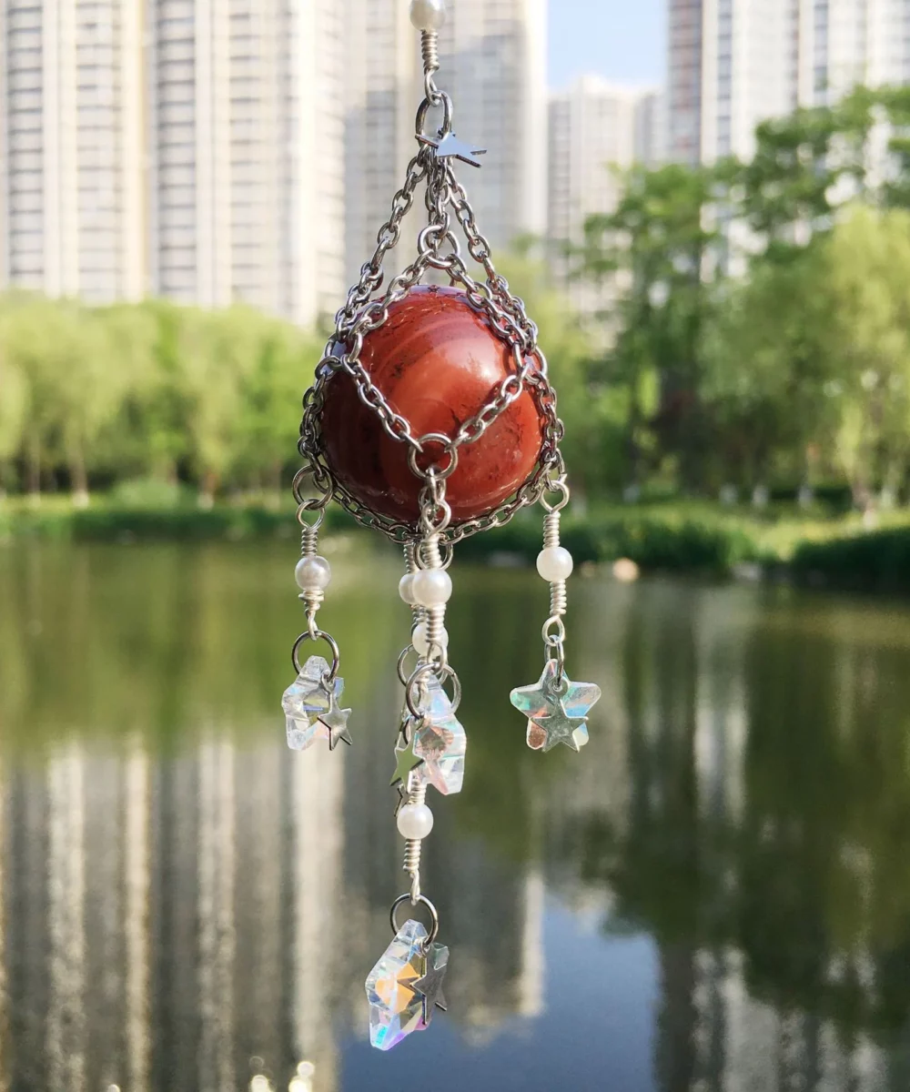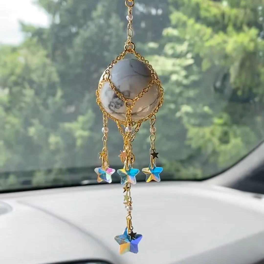 - Nom : Carillon éolien suspendu en pierre naturelle et cristal originale Olivenorma