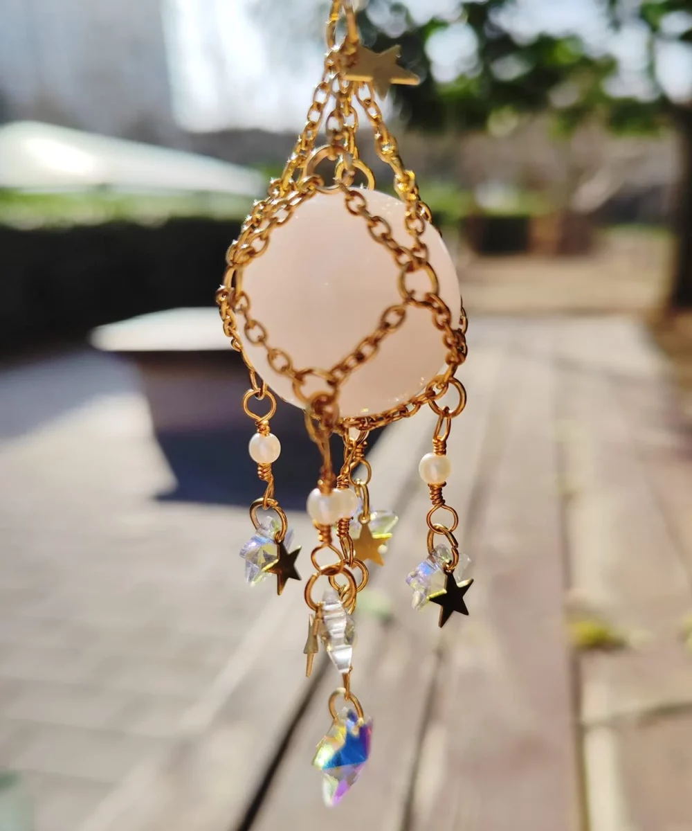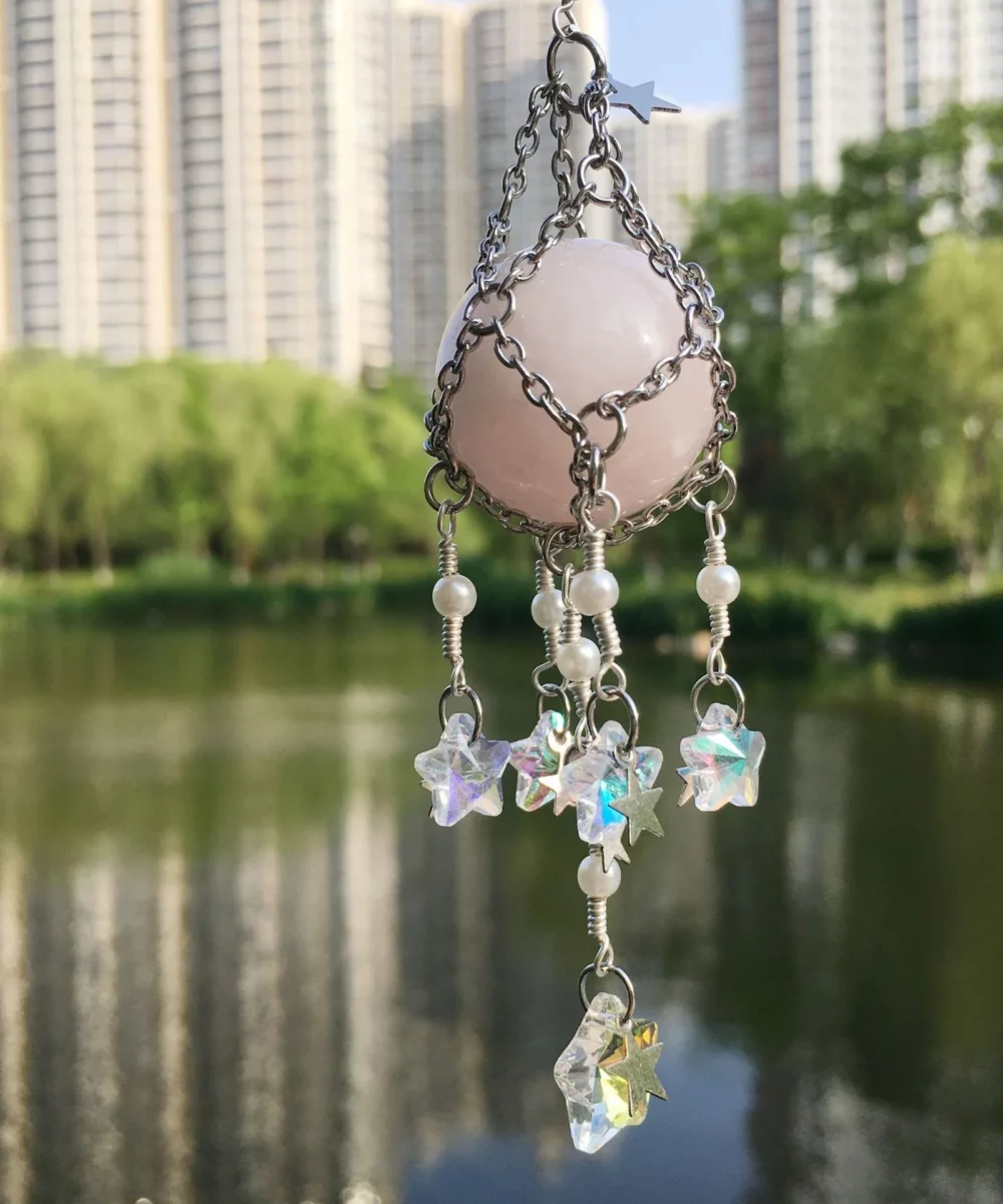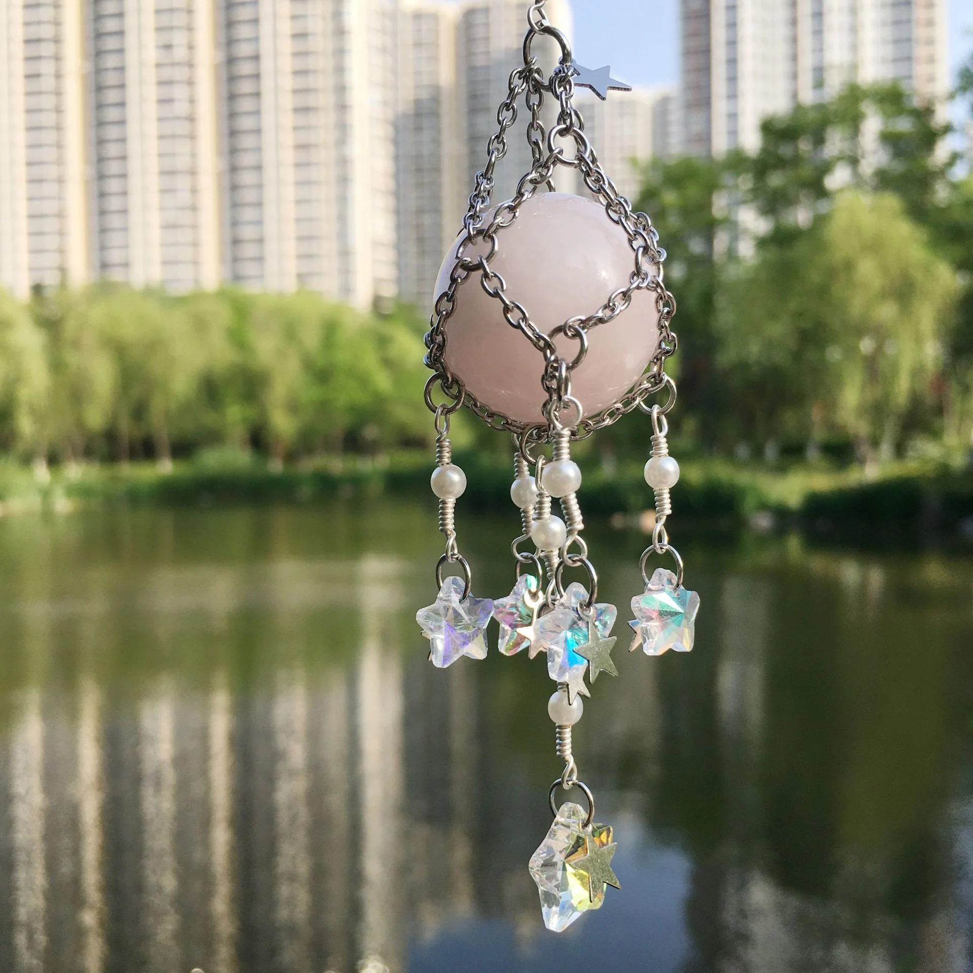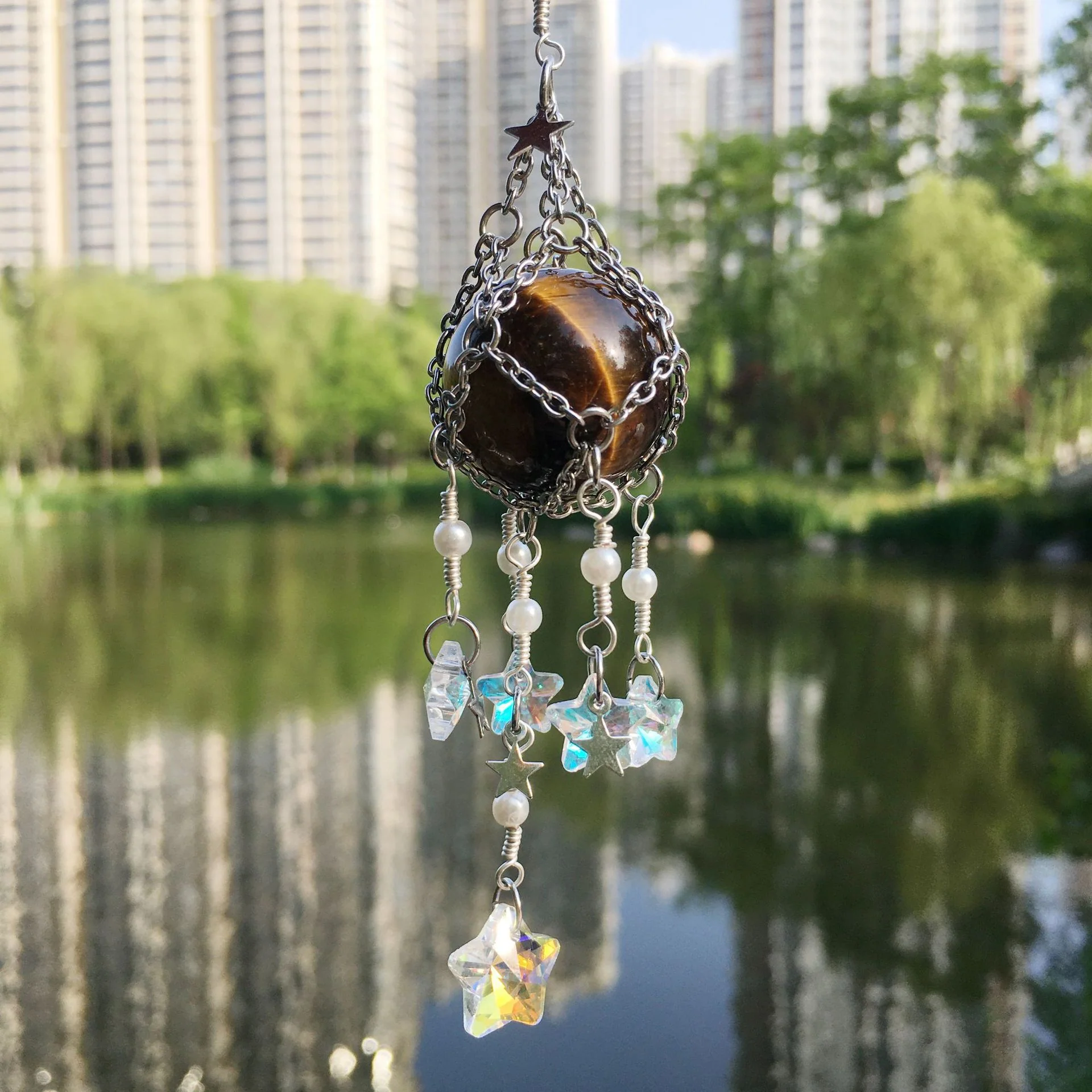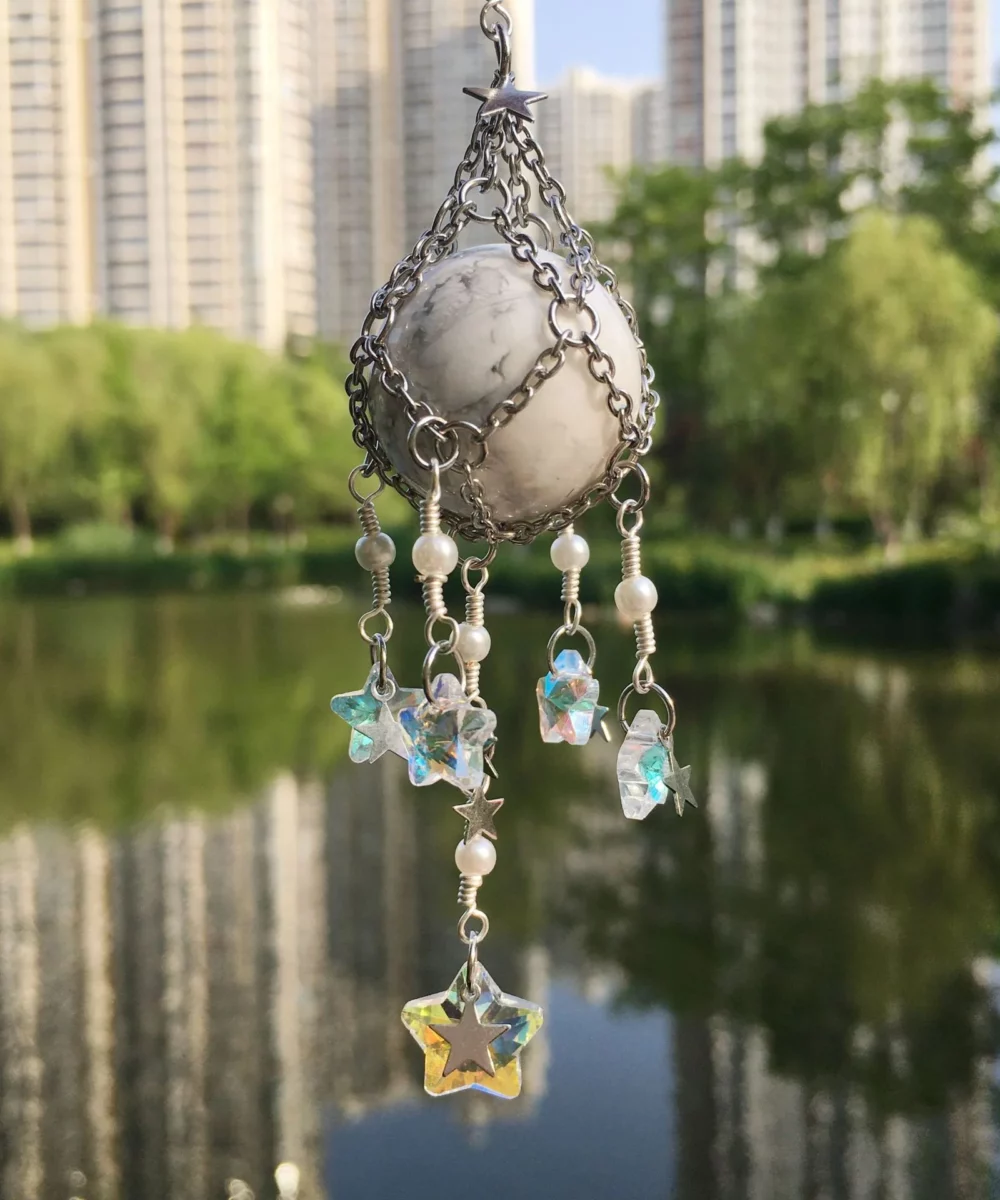 - Nom : Carillon éolien suspendu en pierre naturelle et cristal originale Olivenorma