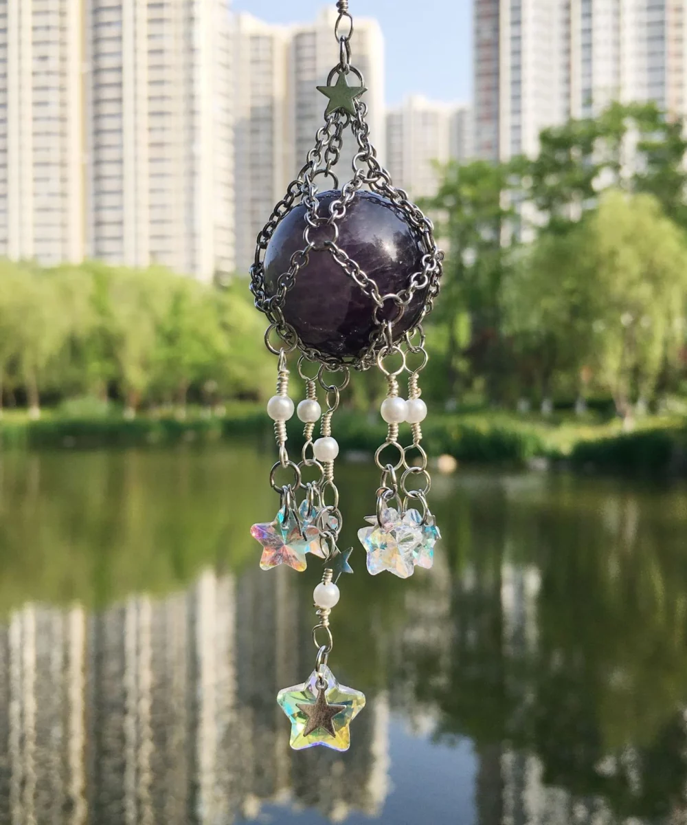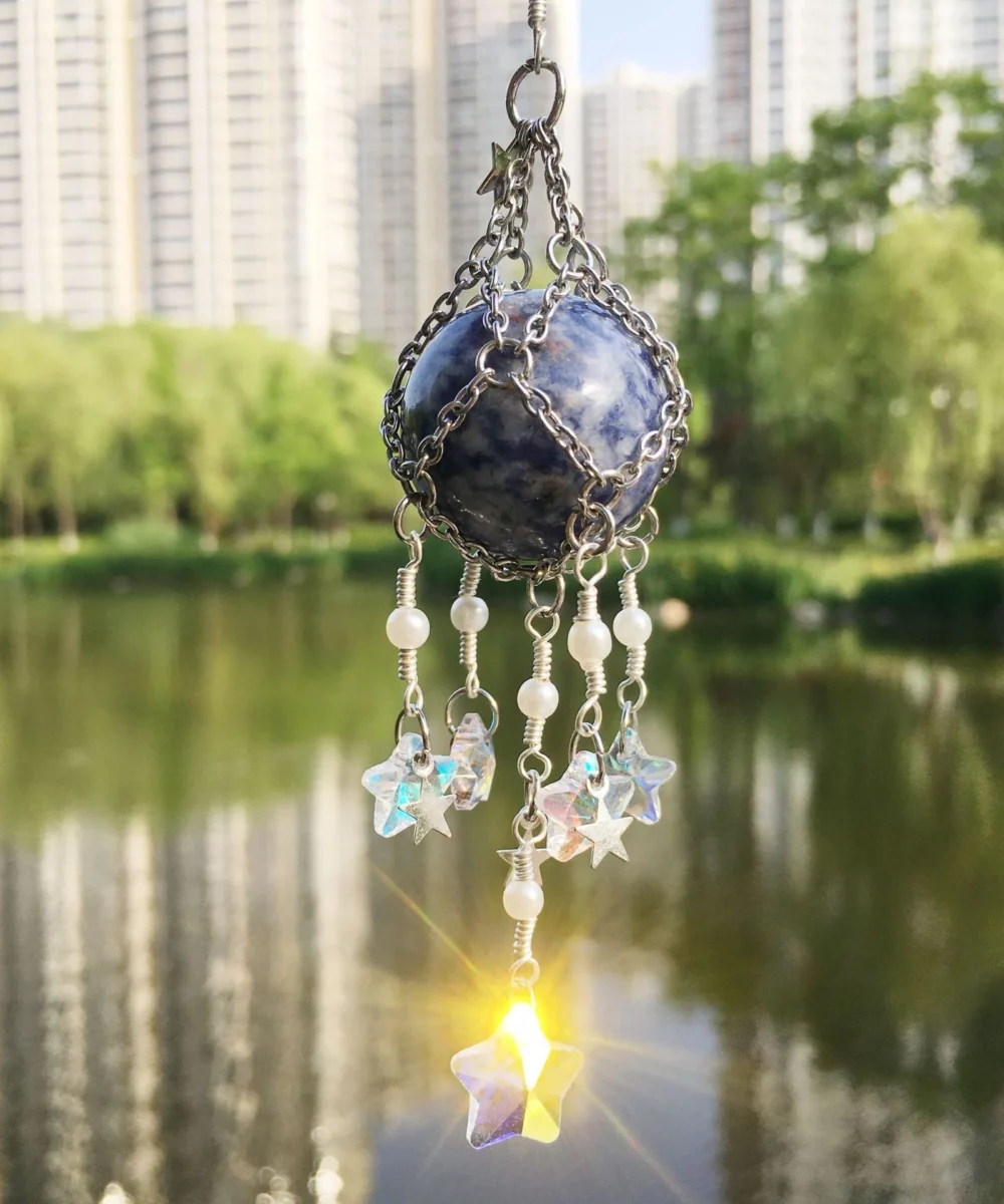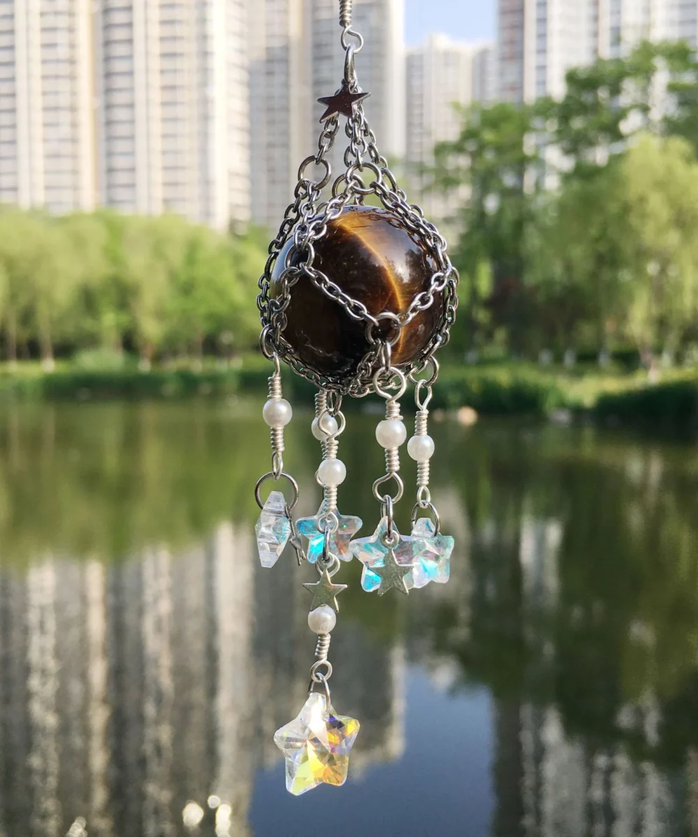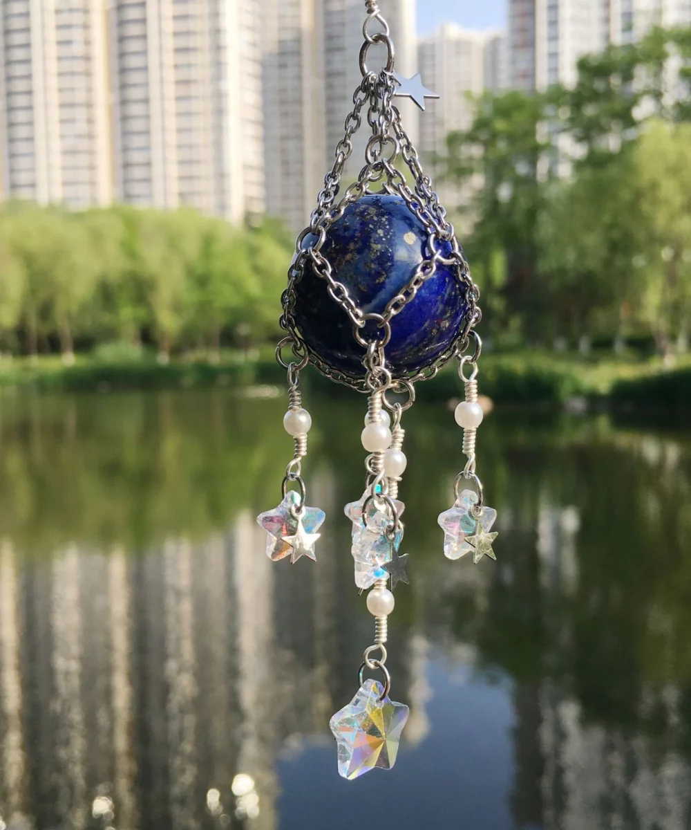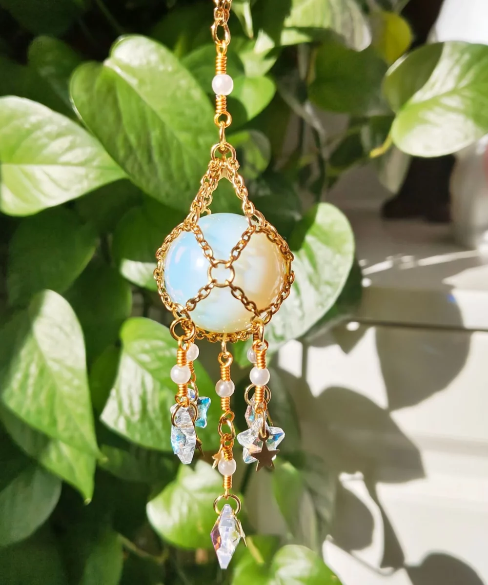 - Nom : Carillon éolien suspendu en pierre naturelle et cristal originale Olivenorma