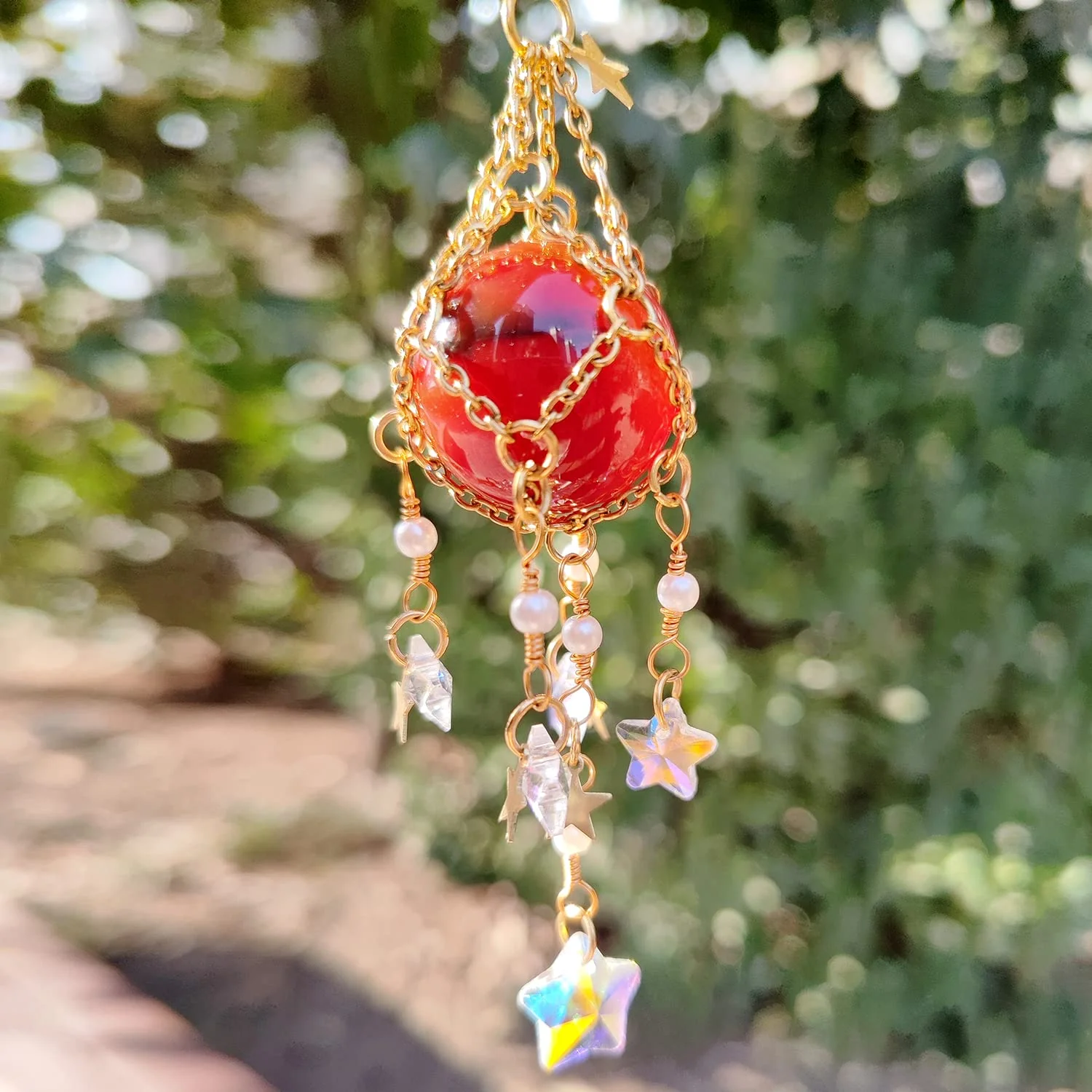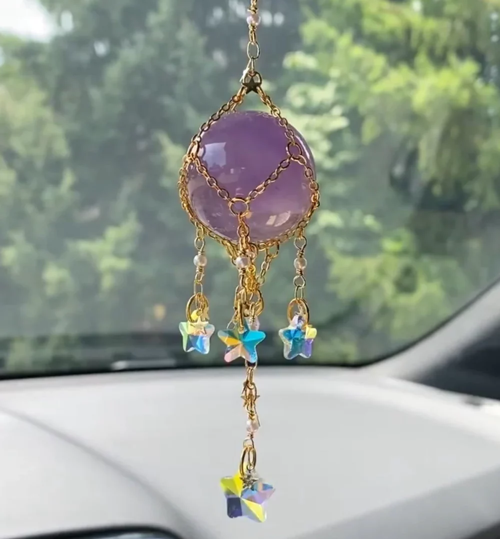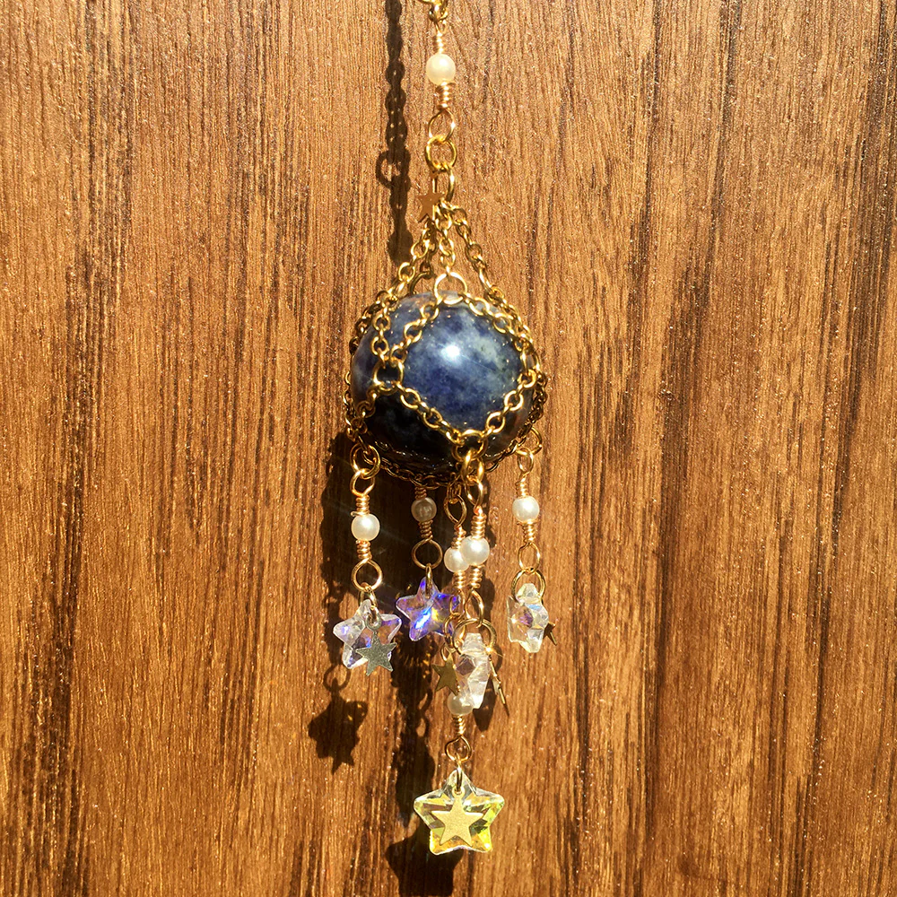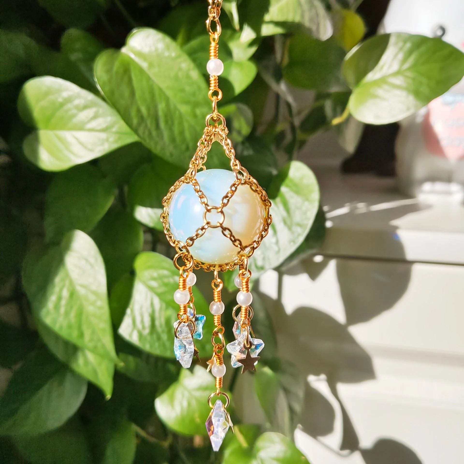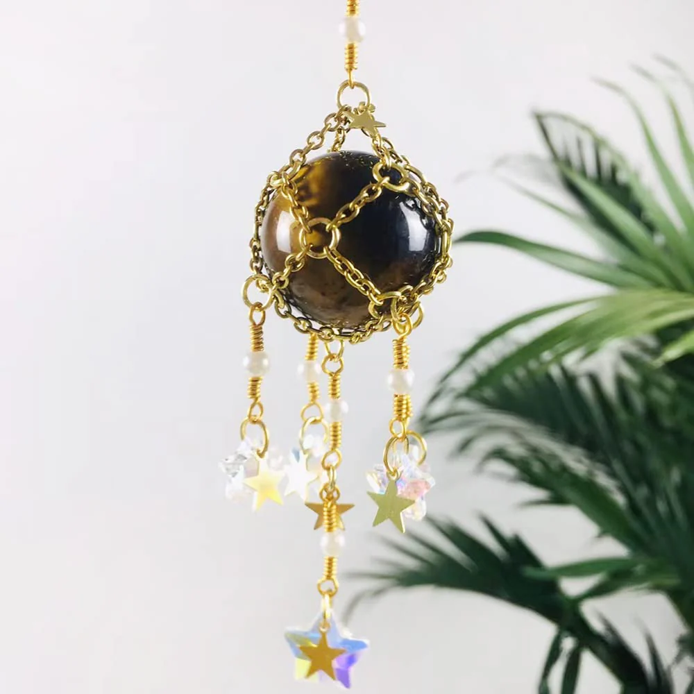 - Nom : Carillon éolien suspendu en pierre naturelle et cristal originale Olivenorma