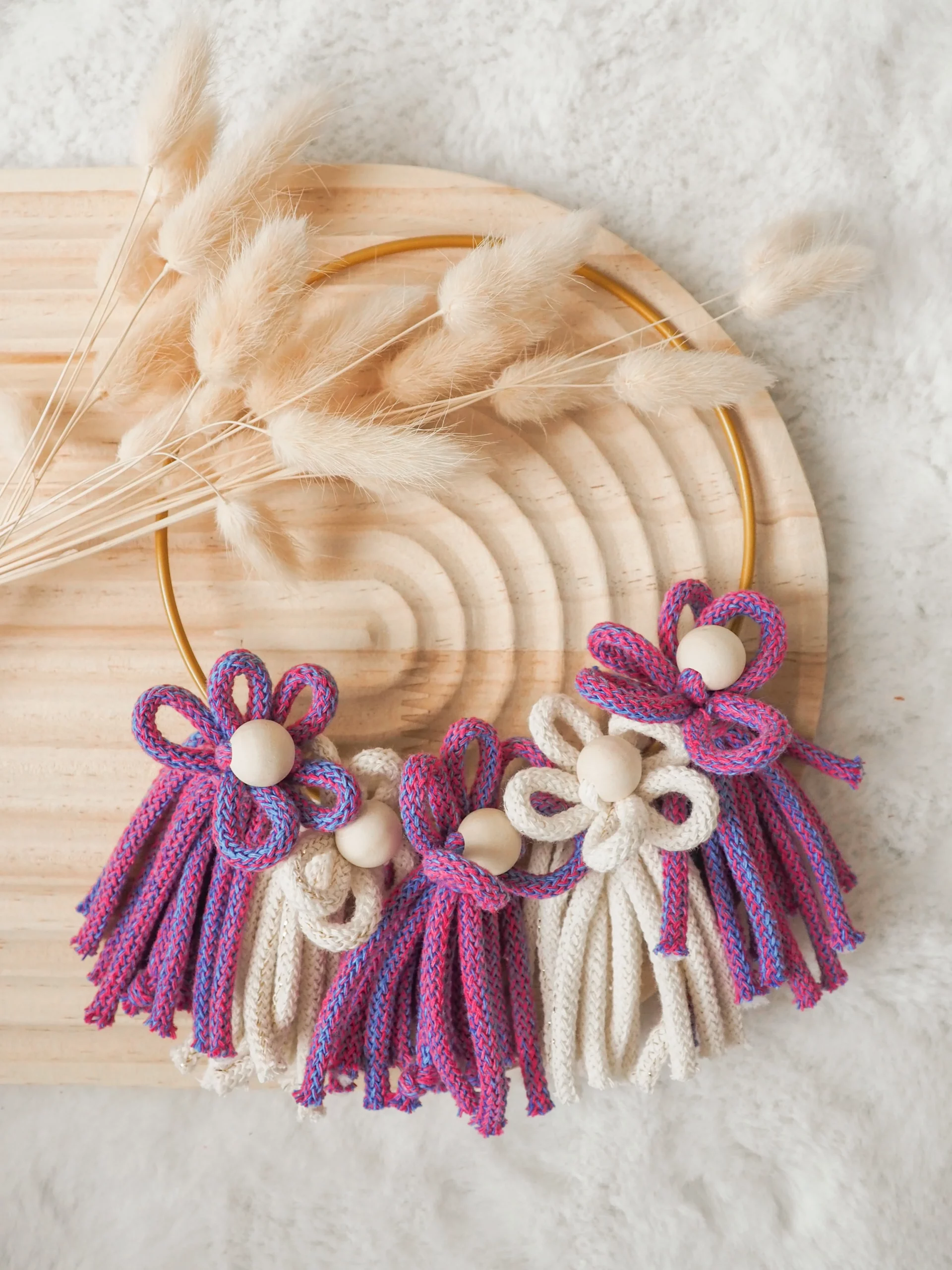 Cette jolie couronne de fleurs est fabriquée à la main. Ni trop grande, ni trop petite on l’imagine très bien en décoration dans une chambre d’enfant ou dans un petit atelier de création. ✂️