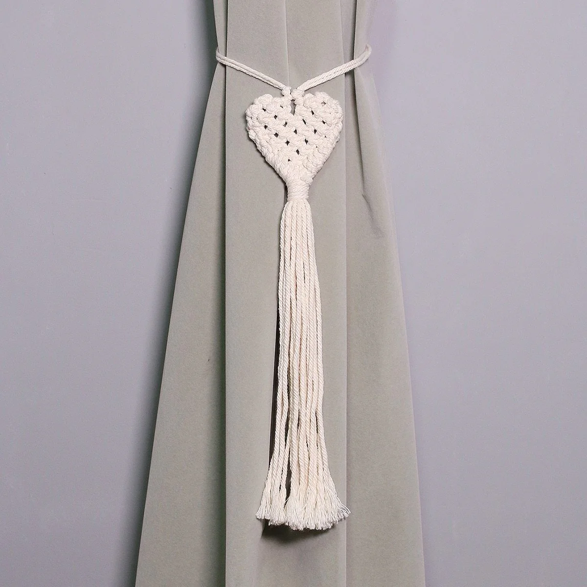 Découvrez notre collection d’embrasses rideaux en commençant par ceux en forme de coeur. Pour un total look romantique dans une chambre ou un salon jusqu’aux derniers détails, les attaches rideaux d’Atelier Macramé sont faits pour vous.